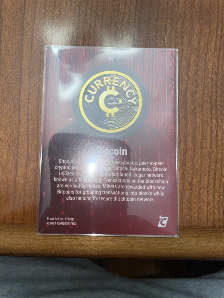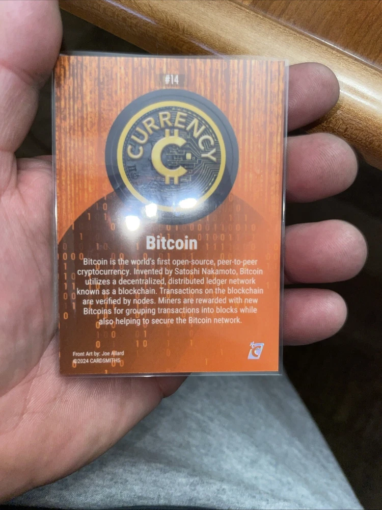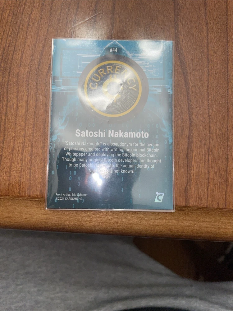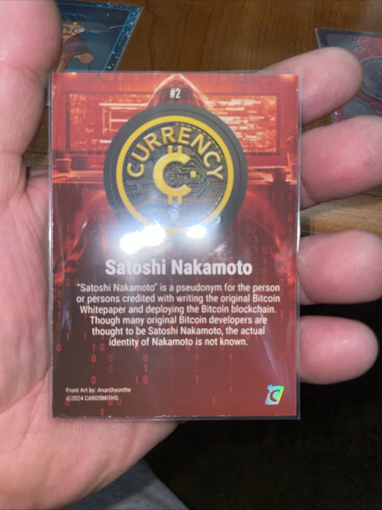 This rare 2024 Cardsmiths Currency Series 3 HOLOFOIL #2 Satoshi Nakamoto & Extra Cards is a must-have for any non-sport trading card collector. The set includes Series 2 cards and is manufactured by Cardsmiths Currency, a trusted name in the industry. The card features a holographic design that adds a unique touch to your collection. The card is from the Trading Card Lots category and is perfect for collectors who want to add to their collection. With the franchise name and year manufactured, this card is a valuable addition to any collection. Don't miss out on the opportunity to own this rare and sought-after card.