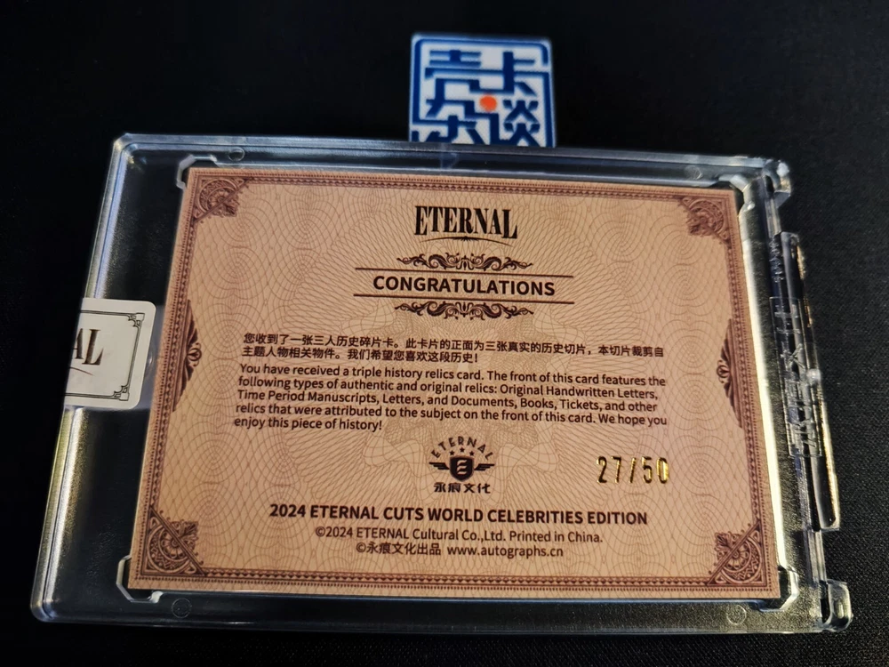 Type: Non-Sport Trading Card Manufacturer: Eternal Autograph Format: Cut Year Manufactured: 2024 Features: World Celebrities Franchise: World Celebrities Character: Marilyn Monroe, Audrey Hepburn, Vivien Leigh Autographed: No Card Name: Authentic History Relic Country/Region of Manufacture: China