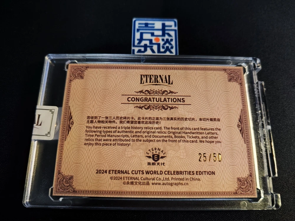 Franchise: World Celebrities Country/Region of Manufacture: China Type: Non-Sport Trading Card Autographed: No Character: Socrates, Plato, Aristotle Manufacturer: Eternal Card Name: Authentic History Relic Year Manufactured: 2024 Autograph Format: Cut Features: World Celebrities