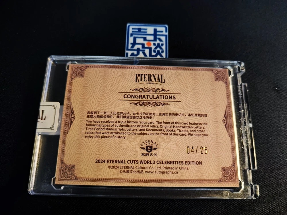 Country/Region of Manufacture: China Features: World Celebrities Autographed: No Manufacturer: Eternal Character: Johann Strauss II, Peter Tchaikovsky, Franz Schubert Year Manufactured: 2024 Card Name: Authentic History Relic Franchise: World Celebrities Type: Non-Sport Trading Card Autograph Format: Cut