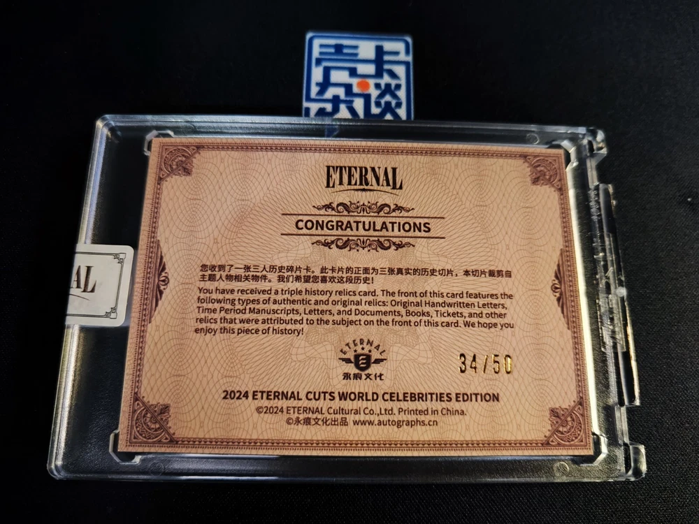 Card Name: Authentic History Relic Manufacturer: Eternal Type: Non-Sport Trading Card Character: Ivan Turgenev, Leo Tolstoy, Maxim Gorky Franchise: World Celebrities Country/Region of Manufacture: China Features: World Celebrities Autograph Format: Cut Autographed: No Year Manufactured: 2024