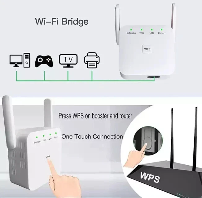 2024 Extendtecc Wifi Extender Signal Booster | New Gen 5X Faster Than Ever Signa US Warehouse - FREE & FAST Shipping in USA Product Description: Extended wireless coverage: Boosts your WiFi Range and Connects up to 60 Devices such as Smartphones,Laptops, Tablets, Speakers, IP Cameras, IoT Devices, Alexa Devices and more. Say Goodbye to WiFi Dead Zone - Extend the WiFi range to hard-to-reach areas, with 2 external High-gain antennas providing strong and reliable network in your home. Long Range - Covers up to 9860 Sq.ft and 60 devices One touch connection - Press the WPS Button on routers then press WPS on Wifi Extender to make fast connection. Easy Set Up - It takes a few minutes to set it up with smart indicator light helps to install. Feedback: 1.Any question for your order, please contact us in time, we will reply to you within 24-48 hours and give you a satisfactory answer. 2.If you are satisfied with our products and services, hope to take up a little precious time to leave feedback reviews for our products.Thanks! 3.Your satisfaction is our effort. Welcome to order again! Have a great day! Our Policy: 100% Satisfaction Guarantee 30 Days Return and Refund Guarantee Free and Fast Shipping in USA, US Warehouse 15% of restocking fee will be charged for return it