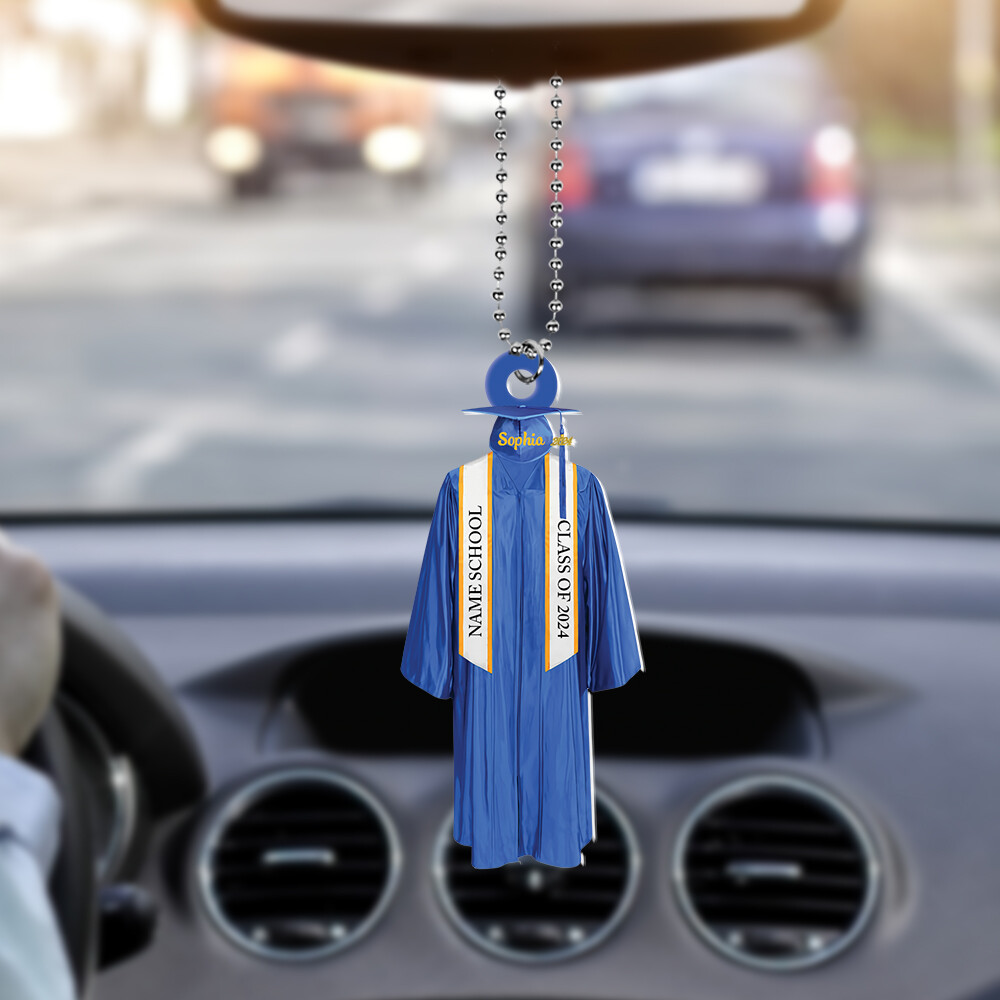 Personalized Graduation Gown Ornament, Graduation Cap Ornament, Class Of 2024 Ornament, High School College University Grad TD-0417-G31R Materials: Acrylic/Wood Size: (Approx.) 3.5" x 3.5" Made of durable materials Beautiful, brushed metal matt finish Includes a red ribbon for hanging from the tree or car or favored location Gift of love: Whether you buy it for yourself or for your friend, family member, colleague, this hanging ornament fits the need to be a very useful and beautiful gift, he/she can use it everyday. NOTE : Acrylic ornament: Double-sided ornament Wood ornament: Single-sided ornament Our ornament is FLAT ORNAMENT, NOT 3D ORNAMENT. Actual color may be slightly different from the image due to different monitor and light effects. Please allow 0.5-2 mm differences due to manual measurement.
