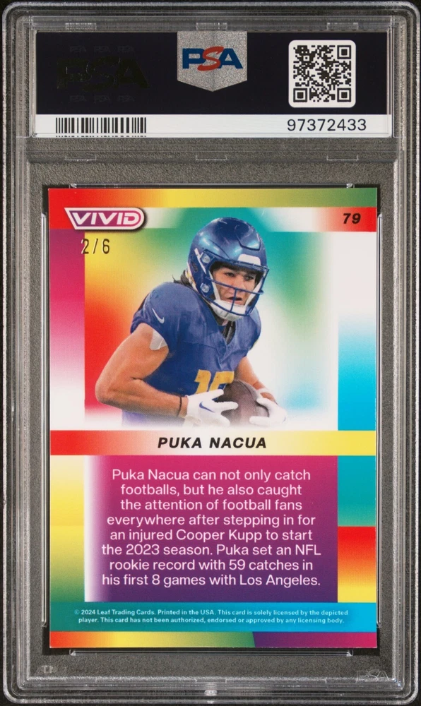 2024 Leaf Vivid Football Puka Nacua 2/6 white Crystal Refractor PSA 10