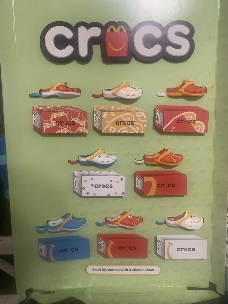 NEW MCDONALDS X CROS COLLAB PLASTIC KEYCHAIN SETS 2 to 8 ( SOLD OUT of number 1 and 5 ) BUT THE DISPLAY CASE COME WITH ALL OF THE CROCS KEYCHAIN ( Minus the crocs box and stickers )