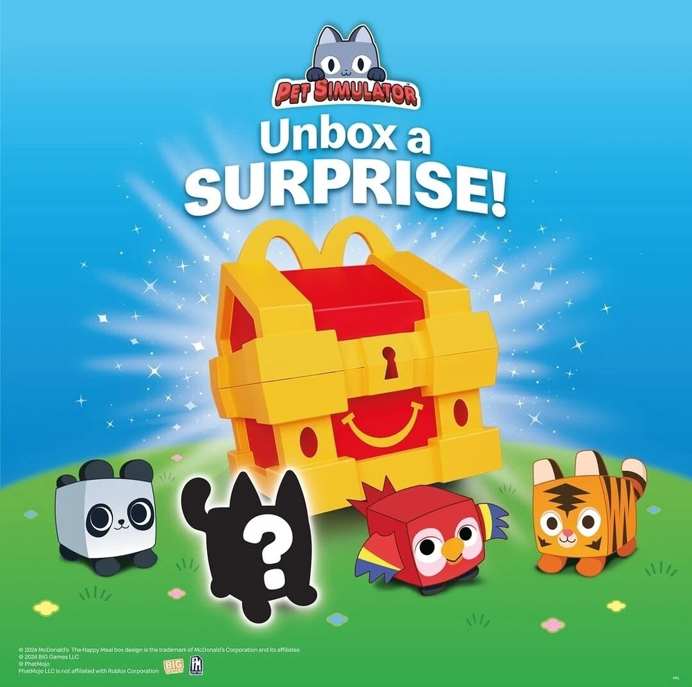 Character Family:Pet SimulatorCustom Bundle:NoYear:2024Restaurant:McDonald'sRecommended Age Range:3+Modified Item:NoBrand:RobloxAge Level:3-4 Years, 4-7, 8-11 Years, 12-16 Years, 17 Years & Up