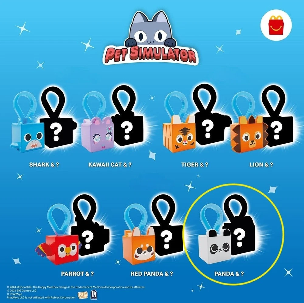 Home2024 McDONALD'S Pet Simulator Roblox HAPPY MEAL TOYS Panda & ?