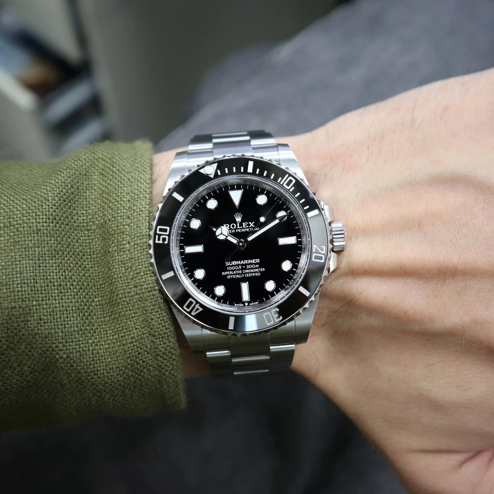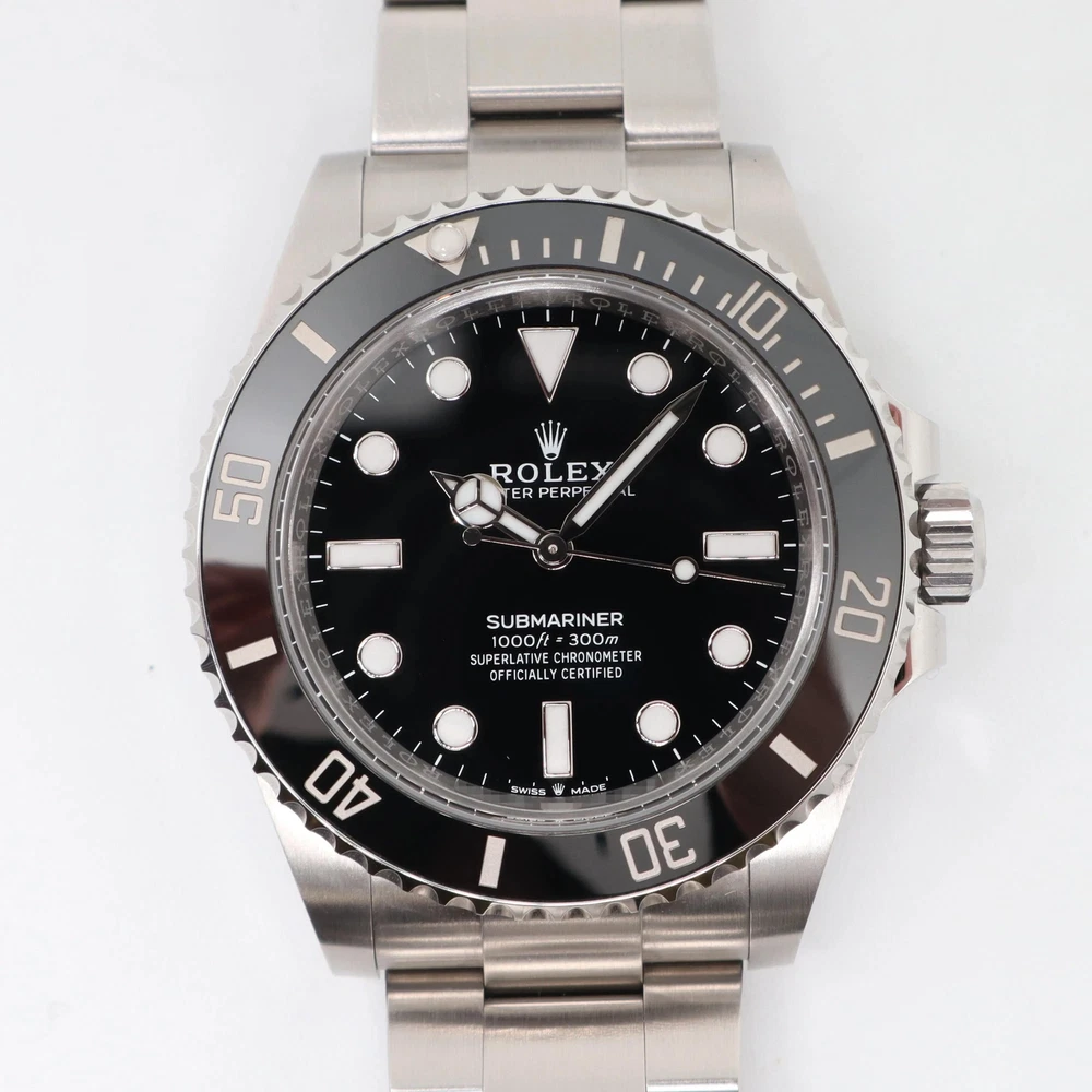 Brand new. Comes with a box, manuals, and a 2024 card. Backed by a 1-year warranty and a 30-day return window. 2024 New Rolex 124060 Submariner 41mm No Date Steel Ceramic Automatic Mens Watch Description Brand new. Comes with a box, manuals, and a 2024 card. Backed by a 1-year warranty and a 30-day return window. Ships from Address 608 5th Ave, STE 408 - New York New York, 10020 Phone 16465368182 Condition New Highlights Weight 159.2g Case Size 41 mm Wrist Fit 7.5 inches Box Yes Papers Yes SKU 038863 General Info Brand Rolex Type Wristwatch Department Men Model Number 124060 Country/Region of Manufacture Switzerland Style Luxury Model Rolex Submariner 124060 Vintage No Features/Other Details Year Manufactured 2024 Customized No Handedness Right With Original Packaging Yes With Booklet Yes With Papers Yes Seller Warranty Yes SKU 038863 Features Luminous Hands, Screwdown Crown, Self-Winding, Swiss Made, Swiss Movement, Water-Resistant, Rotating Bezel, Sapphire Crystal Band/Bracelet Details Band Color Steel Band Material Stainless Steel Closure Fold-Over Clasp with Flip Lock Safety Band Type Bracelet Band Width 17 mm Lug Width 20 mm Wrist Fit 7.5 inches Case Details Case Material Stainless Steel Case Color Steel Water Resistance 300 m (30 ATM) Watch Shape Round Caseback Solid Case Finish Polished Case Size 41 mm Case Thickness 12.5 mm Bezel Details Bezel Type Unidirectional Rotating Bezel Color Black Display Dial Color Black Display Analog Indices 12-Hour Dial, Non-Numeric Hour Marks Movement Movement Mechanical (Automatic) Number of Jewels 31 Jewels Movement Caliber Caliber 3230 Shipping Warranty Return Policy FAQ All in stock items are shipped within one business day. Same day shipping is available upon request. Due to insurance purposes, all packages are shipped with a tracking number and signature is required. We do not ship to PO Boxes. Import duties, taxes, and charges are not included in the item price or shipping cost. These charges are the buyer's responsibility. Please check with your country's customs office to determine what these additional costs will be, prior to bidding or buying. All watches sold by Luxxwatches are covered with in-house warranty for a period of Watches that lose time, gain time, do not change day or date, or have any other signs of not working properly will be serviced under our warranty program.The Luxxwatches warranty does not cover any damage resulting from water damage or physical harm. Additionally, the warranty does not cover polish for the watch case, any damage to crystal, band, bezel, straps, screws, crown/stem, finishes, clasps/buckles which are a result of normal wear and tear. Any lost parts of the watch, including stones, is not covered with the warranty. Any damage incurred as a result of exceeding the limitations of the watch manufacturer’s water resistance guidelines will not be covered with the warranty. Any third-party repairs, outside modifications or customizations will void the warranty. All the items purchased from Luxxwatches are covered with a 30-day money back guarantee. If you are not fully satisfied with your purchase, you may exchange or return your item for a refund within 30 days of first receiving your item. Item must be in the same condition as it was received, and include all original booklets, box & packaging. Any signs of wear, water damage, or altering will result in refusal of your return.Special order items, such as items we do not have in our warehouse and are specially ordered from our distributor or items that have been customized, are non-returnable.We offer free returns on eligible items, please contact us for the return shipping label. How to start an automatic watch? It’s very important to wind an automatic watch properly, prior to its use. The initial wind provided may only last a short while, making the watch appear defective once it stops ticking. To ensure your watch functions to the fullest of its capabilities, wait for it to stop and then wind the watch counter-clockwise 15-20 times. Next, push the crown back, screwing it down to preserve the water-resistance. *Be mindful that excessively winding the watch may cause damages to the movement, so don’t overdo it. Unlike self-winding watches, the crown doesn't need to be wound on quartz models. If it still isn’t ticking, simply bring it by for a battery replacement. Why the watch is running slow? A watch can lose time for various reasons including, but not limited to a dying battery, which will cause the second-hand to begin jumping across several seconds at once instead of passing each individually, magnetization, causing tension between small parts within the movement and natural friction from the watch being worn. If the watch is a mechanical model (Automatic or Manual-wind) this can also be a sign that the watch needs to be overhauled. How to use a chronograph? Operating a Chronograph requires using the pushers on the side of the case. The top pusher is used to start and stop the chronograph hand while the one at the bottom is used to reset it. Once the top pusher is pressed, the hand will run continuously, which you can track using the accompanying sub-dial. In order to reset the chronograph, it has to be stopped first. Otherwise the button will do nothing when pressed. How to set the date & time? Whether you have a screw or push-down crown, setting the date and time is simple. If its a screw-down, unscrew it by turning it downward, counterclockwise prior to following these steps. Pull out the crown to the first integer to operate the date alone, allowing the time to continue ticking. Pulling the crown out farther, you’re then allowed to adjust the time, which also shifts the date after each 24-hour cycle. Once you have your watch set, simply push the crown back in all the way and screw it fully closed to preserve its water-resistance. *Do not change the date when the watch is between 10PM-2AM because the movement can be damaged. How to ensure the