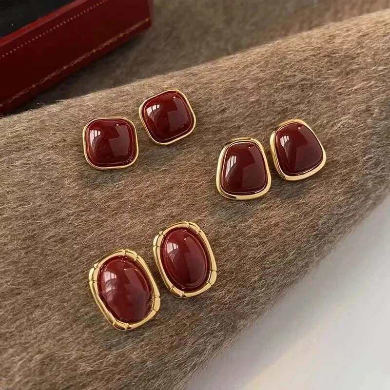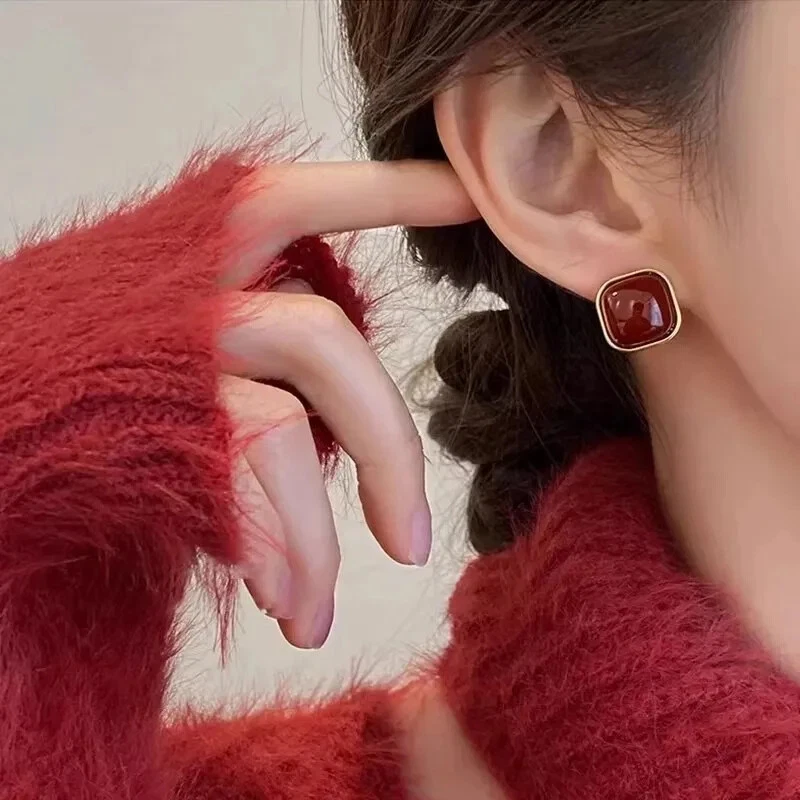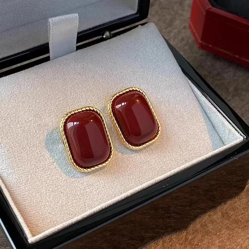 2024 New Vintage Wine Red Love Earrings Elegant Temperament Suitable For Women T