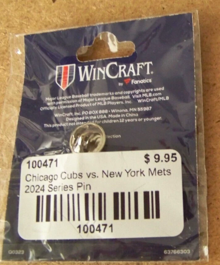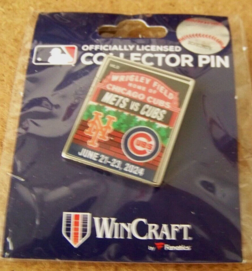 2024 NY New York Mets at Chicago Cubs Wrigley Field lapel pin This MLB licensed, post and butterfly clip backed lapel pin measures about 1" wide, 1.3" tall. Factory sealed, unopened. Don’t forget to click on my "Stores" link, next to my eBay name, to see other items I currently have listed for sale, or you can copy and paste this address into your browser: stores.ebay.com/highcountrycollectibles SHIPPING INFORMATION Shipping to U.S. addresses is FREE! HIGH COUNTRY COLLECTIBLES Since 1989 – A LEADER IN THE DENVER SPORTS MEMORABILIA MARKET. Check out my other auctions and listings, and keep an eye out for the different, unusual, and EXCLUSIVE items available nowhere else but from High Country Collectibles.