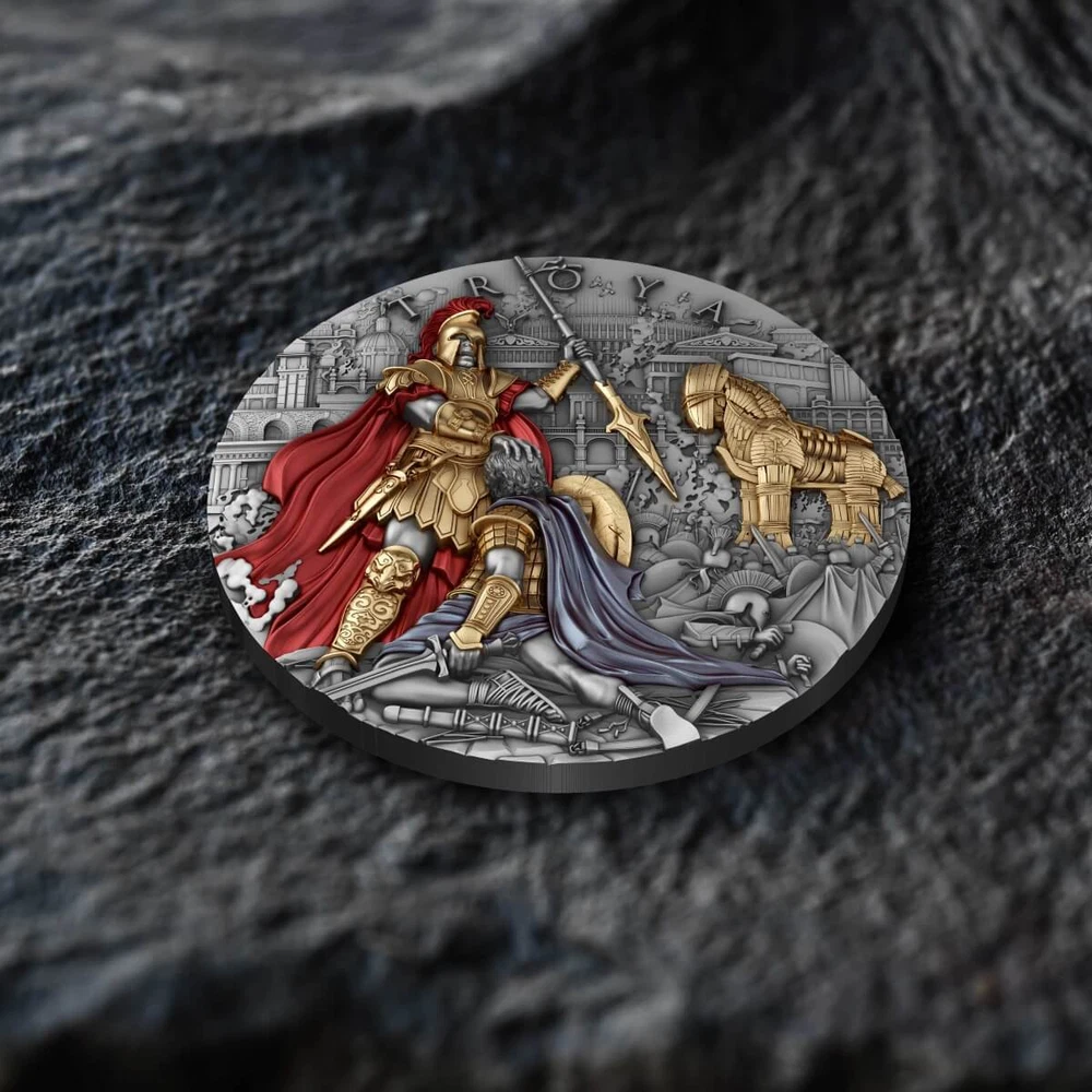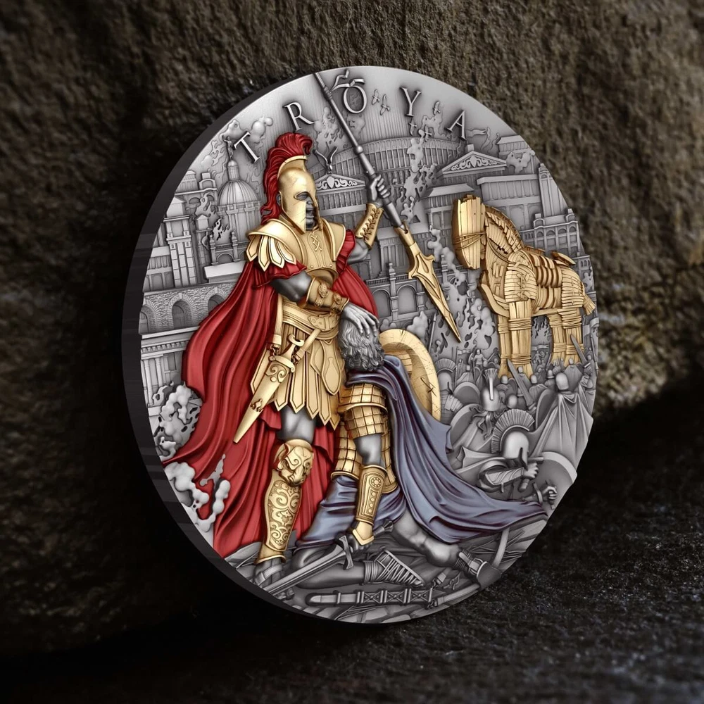 2024 Niue Troya 2 oz Silver Antiqued Gilded High Relief Coin