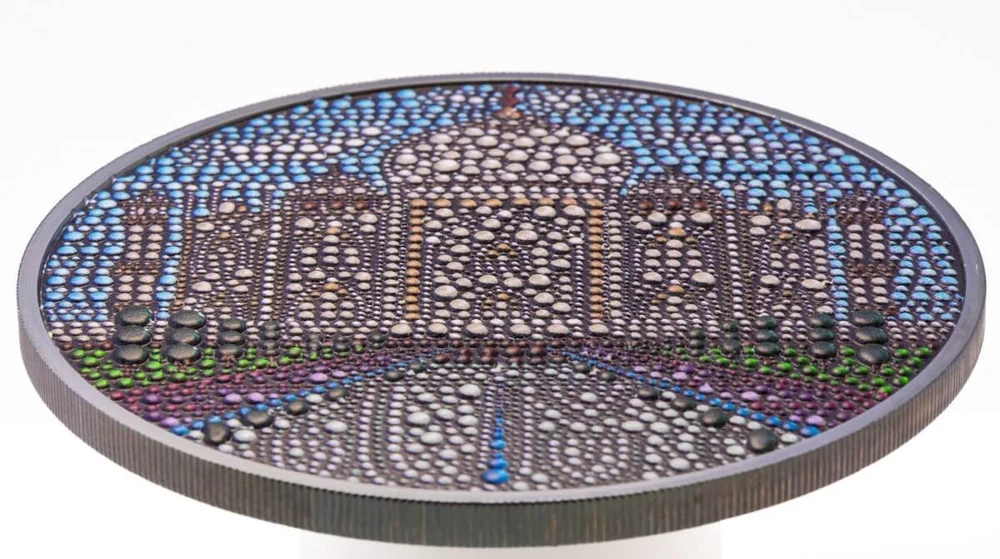 FREE SHIPPING ON DOMESTIC ORDERS New releases Deals Exclusives Bullion Gold Graded Licensed Standing behind our products & our name for over a century SINCE 1915 SHOP BY CATEGORY Animal Theme Art Coins Coin Sets Comics, Notes, & Foils Deals Famous Figures & Landmarks Gold Coins GR Reserve Exclusives Graded Coins Holiday Theme Licensed Products Lunar Calendar Nature Coins Premium Bullion Rare Certificate Numbers Shaped Coins Warriors & Gods Other PARTNERS & AFFILIATIONS STORE NEWSLETTER Add us to your Favorites and receive exclusive emails about new items and special promotions! Sign up 2024 Palau Dot Art Taj Mahal 3 oz Silver Colorized Black Proof Coin Product Description The ‘Taj Mahal’ coin is the fifth release in the ‘ Dot Art’ series. Utilizing enhanced Smartminting©️ technology, the original dot art painting is transformed into a 3D image and struck in silver. The coin features a black proof finish and is colored to match the original painting. It is struck on a 3 oz pure silver 65mm blank with the highest quality standards and comes with a beautiful box and certificate of authenticity. With a limited mintage of only 333 pieces worldwide, it is sure to become a sold-out item soon. Secure one for your dot art or wonders of the world collection at your local modern coin dealer before they are gone. The reverse of the coin depicts the Taj Mahal with its iconic reflection in the water ponds. All in traditional dot art style. The obverse side of the coin depicts the unique Coat of Arms with the same dot-art and the inscriptions: “REPUBLIC OF PALAU” (the issuing country), “2024” (the year of issue), “DOT ART” (the name of the series) and “20 Dollars” (the face value). The defining criterion for a dot painting is the technique used – that it is produced by repeated imprints of a paint covered brush, dotting stick or other implement onto the surface of the painting and that in doing so, there are recognizable ‘dot’ marks on the canvas. These dots together form an image giving it’s a specific look. The Taj Mahal, an iconic masterpiece of Mughal architecture, stands as a testament to love and artistry. Commissioned in 1632 by Emperor Shah Jahan to honor his beloved wife Mumtaz Mahal, it took over 20,000 artisans nearly two decades to complete. Crafted from white marble, its symmetrical design, intricate carvings, and delicate inlays of semi-precious stones mesmerize visitors worldwide. The central mausoleum, flanked by four minarets, reflects stunning symmetry and balance. Its ethereal beauty is further accentuated by the changing hues of the sky, creating an aura of timeless elegance and romance that transcends generations, symbolizing eternal love and devotion. Contact Shipping Payment Returns To contact our Customer Service Team, simply click the button here and our Customer Service team will be happy to assist. Domestic Shipping Options - Free shipping USPS Ground Advantage UPS Ground Saver International Shipping Options – Calculated USPS Priority Mail International UPS Worldwide Expedited UPS Worldwide Saver UPS Standard to Canada Handling time Will ship within 1 business day of receiving cleared payment. Ship From Location Attleboro, Massachusetts, 02703, United States Note to international buyers The item price and shipping charges do not include import duties, import taxes, and customs clearance fees. These charges are the buyer's responsibility. Please check with your local customs office to determine what these additional charges may be prior to bidding or purchasing an item. If your order is returned to GR Reserve due to your refusal to pay duties or taxes, or if the carrier (for example, Federal Express or UPS) was unable to deliver your order, you agree you are responsible for any return shipping fees, additional duties, or applicable taxes for returning the package back to GR Reserve. In addition, if your package is returned to GR Reserve, we will not reship your order unless and until we are paid in full for any return shipping costs, duties, taxes we have had to pay or advance for you as well as any subsequent re-ship fees back to you. Immediate payment is required upon selecting "Buy It Now" or upon checking out through the cart. We accept payment via U.S. PayPal accounts and all Major Credit Cards, Debit Cards & Google Pay. We are legally required to collect sales tax in those states and localities where we maintain a physical presence. The applicable amount of sales tax charged to an order will be calculated based on the shipment destination's state and local sales tax laws. Thank you for shopping with us on eBay! Standard Other eBay Mastercard® Earn up to 5x points when you use your eBay Mastercard®. Learn more GR Reserve’s return, refund, and exchange policy is limited to (30) business days from the date that you received your item. If you find you have received a defective item, please contact us, and include detailed photos. GR Reserve will then assess whether the product is eligible for a return, refund, or exchange. For approved exchanges, you must follow all instructions provided by us, including packaging the product appropriately. We are responsible for the cost of return domestic shipping and the risk of loss during the return shipment. Refer to eBay Return policy for more details. You are covered by the eBay Money Back Guarantee if you receive an item that is not as described in the listing. Free Shipping On all domestic order 100% SATISFACTION GUARANTEED About Feedback GR Reserve - Attleboro, MA 02703