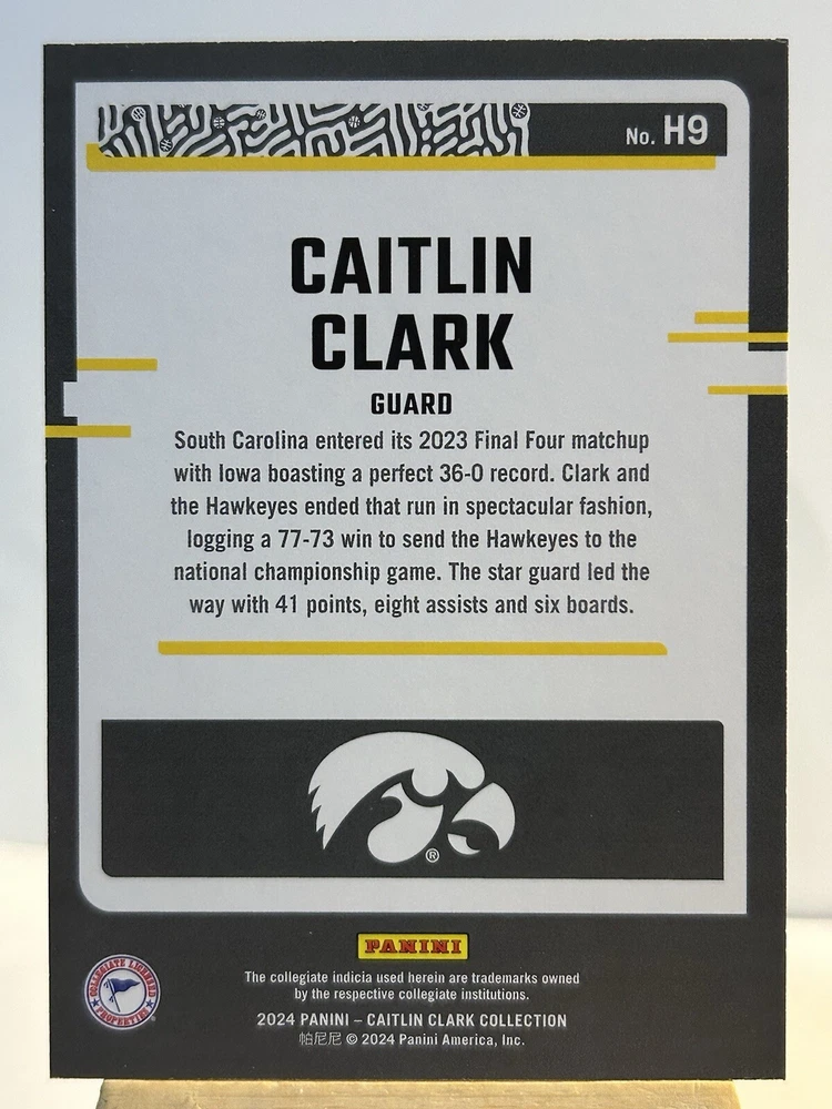 This 2024 Panini Caitlin Clark Collection Red Foil Highlights #H9 sports trading card is a must-have for any basketball fan. Featuring a stunning design and top-quality materials, this card is bound for greatness. With its unique red foil highlights, it's sure to stand out in any collection. Ideal for sports trading card enthusiasts, this card is a great addition to any collection. Whether you're a fan of Caitlin Clark or simply appreciate high-quality cards, this one is sure to impress. Don't miss out on the chance to own a piece of basketball history.
