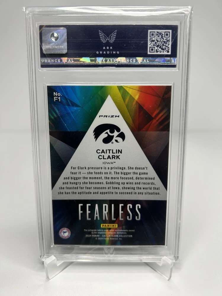 2024 Panini Caitlin Clark Rookie Collection #F1 Prizm Fearless - ARK 8.5. Condition is Graded. Sent with eBay Postage Labels.