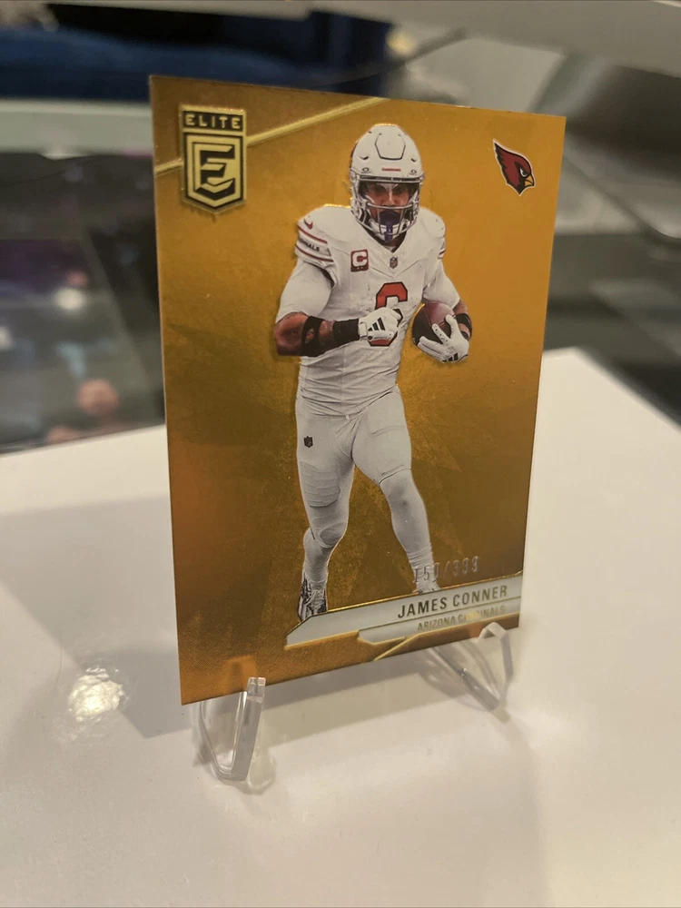 This 2024 Panini Donruss Elite Football card features James Conner of the Arizona Cardinals. The card is a parallel variety, specifically an orange parallel with a print run of 399. It is also serial numbered and comes from the 2023 season. The card is perfect for collectors of sports trading cards, especially those who focus on football and the National Football League (NFL). Manufactured by Donruss, this card is part of the 2024 Panini Donruss Elite Football set. With its unique features and high-quality design, this card is a must-have for any serious collector.