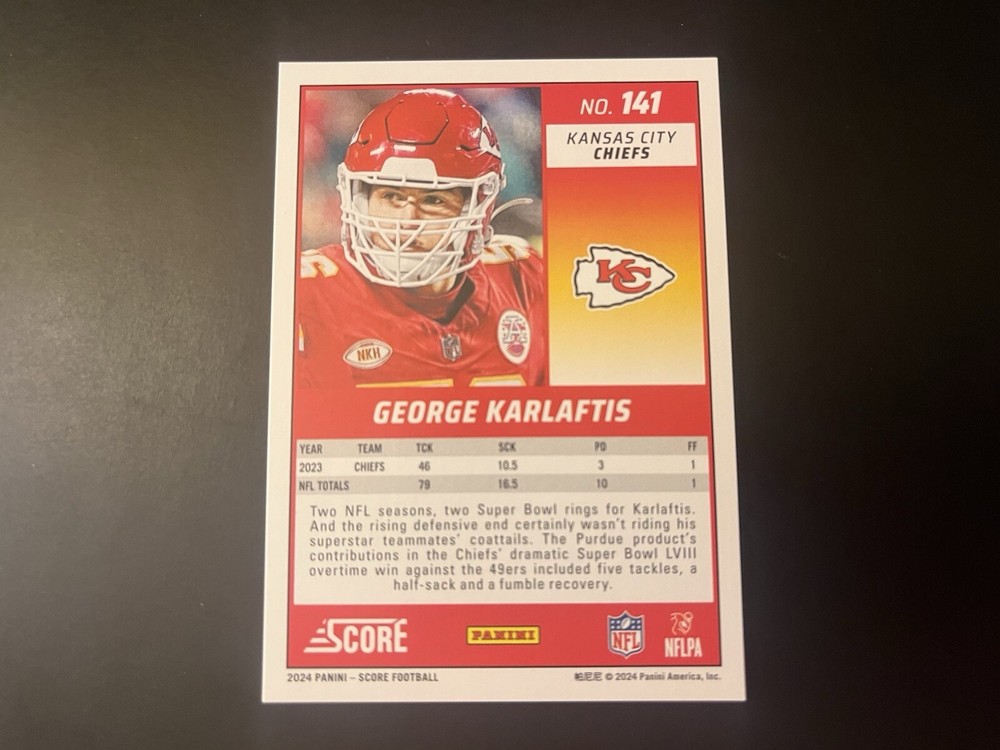 2024 Panini Score Red #141 George Karlaftis /20 Kansas City Chiefs Color Match. Condition is Ungraded. Shipped with eBay Standard Envelope for eligible items up to $20.