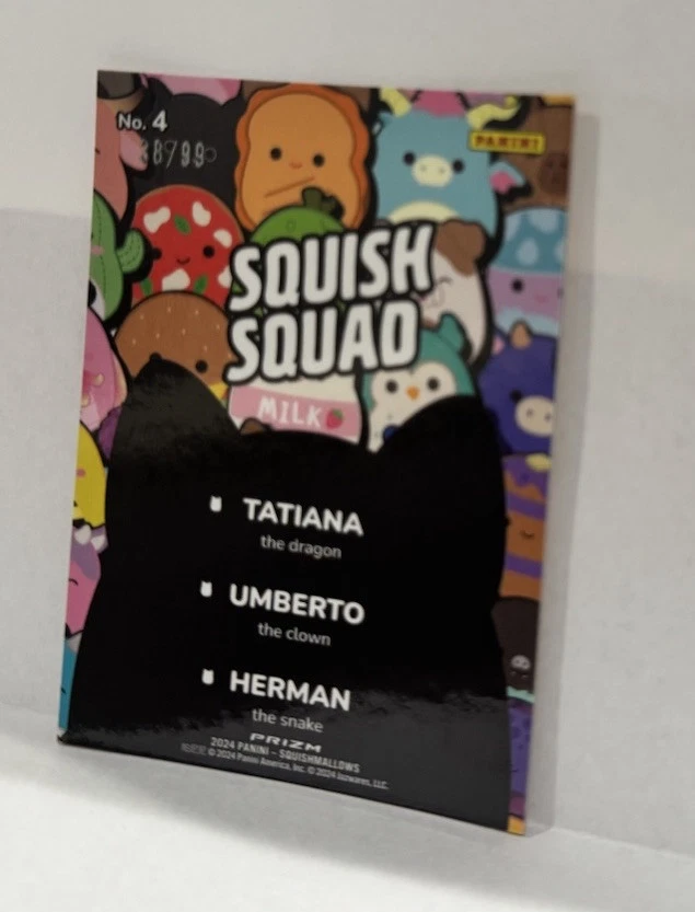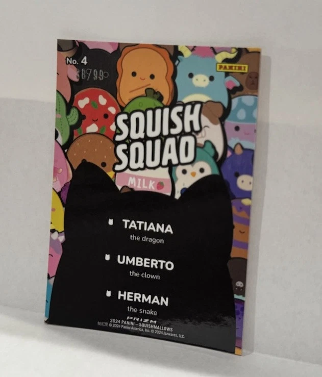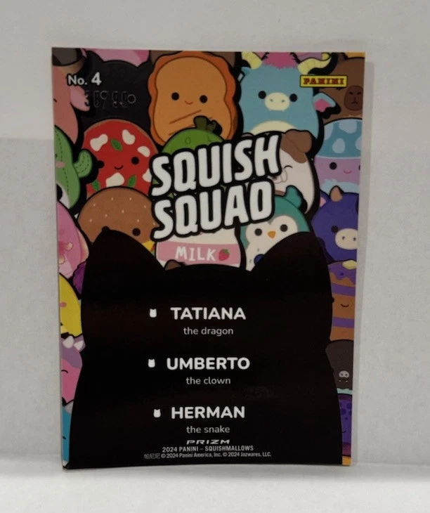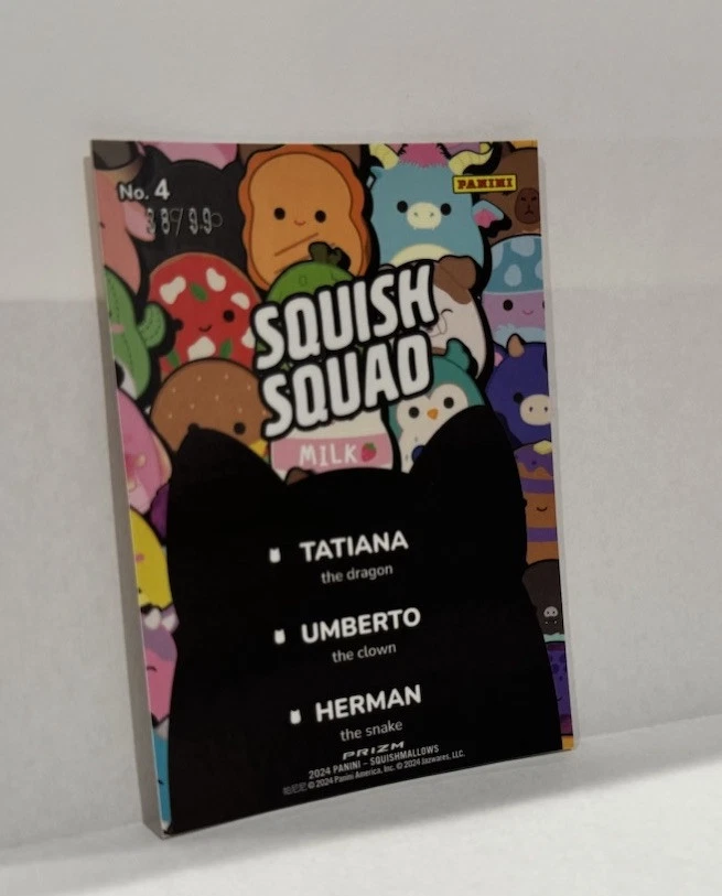 This 2024 Panini Squishmallows Fantasy Squad Orange Pulsar Prizm trading card is a rare find from Series 1, featuring a limited run of only 99 cards. As part of the Squishmallows franchise, this non-sport trading card is an original release with a unique orange parallel variety. Manufactured by Panini in the United States, this card is serial numbered for authenticity and is in near mint or better condition. A highly sought-after collectible for fans of fantasy-themed trading cards, this card is a valuable addition to any collection.
