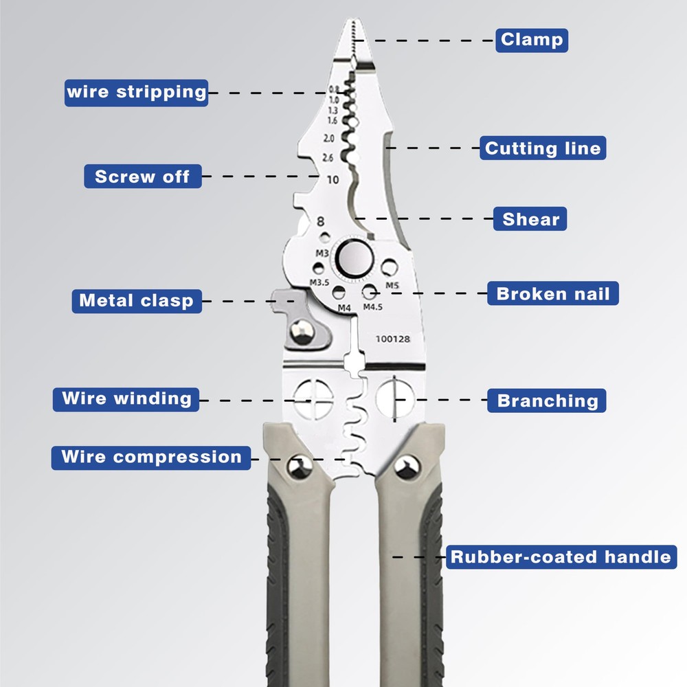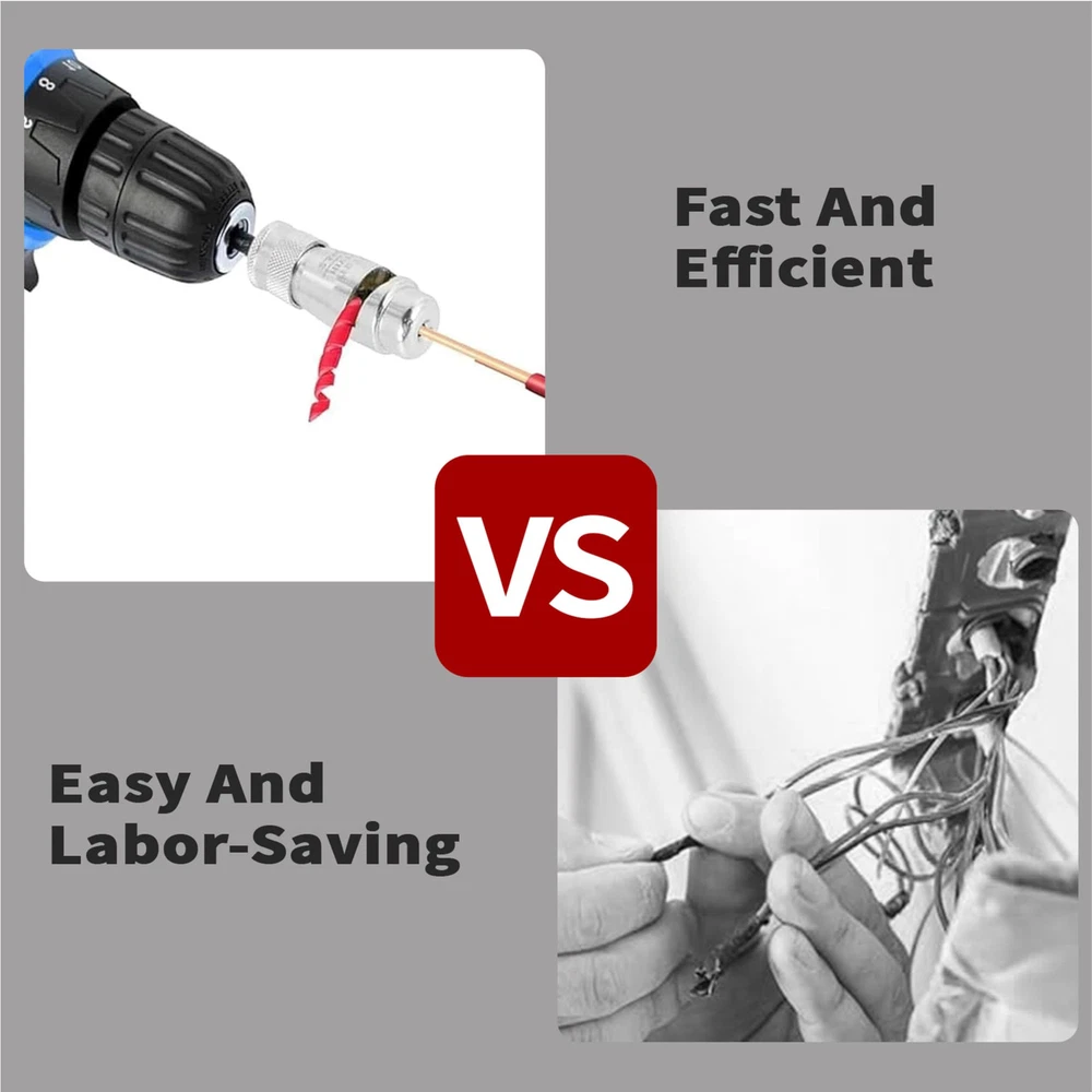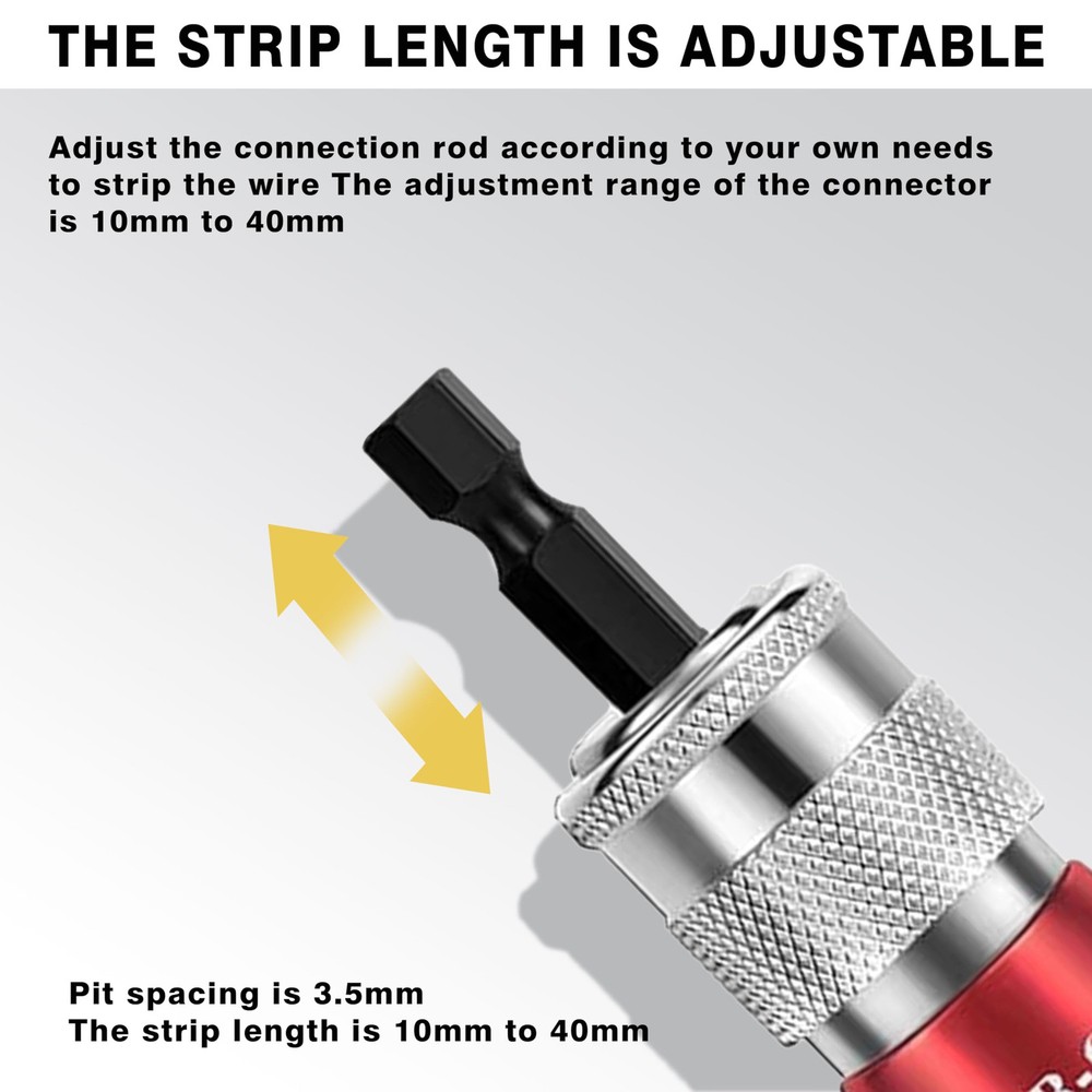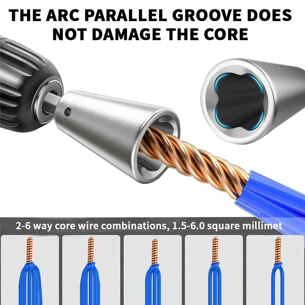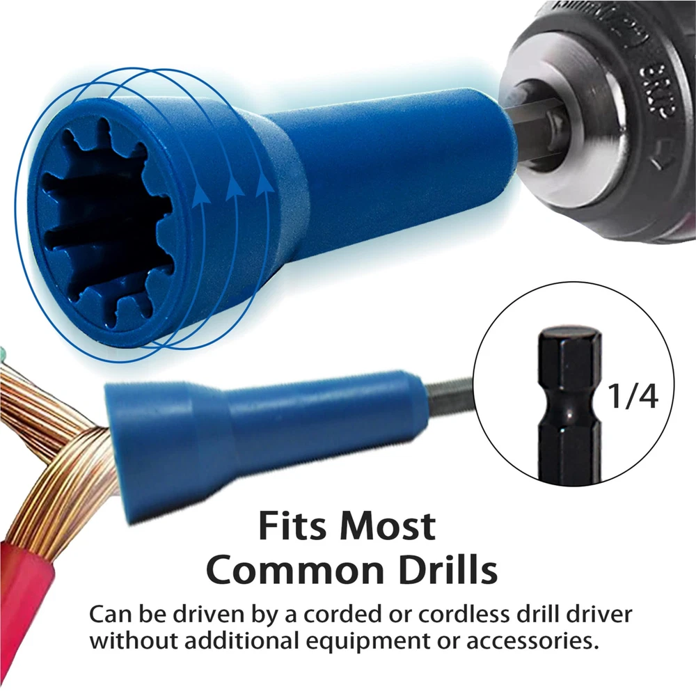 【2024 New Wire Stripping and Twisting Tool】: Introducing the latest innovation in wire tools for 2024. By the electric drill, the wire sheath will rotate out along the groove of the electric wire stripper. Wire stripper tool for drill is more convenient and faster than the old manual wire stripper. 【Easy to Install and Use】Simply attach the wire connector driver to a power drill and twist wires easily and efficiently. wire stripper can be used with handheld drills and power tools for fast wire stripping results, and the tool can be connected in parallel over 30,000 times. Under the action of the drill, the wire sheath rotates out along the grooves of the wire stripper. 【Electric Wire Stripper - Sturdy Material】:Electric Wire Stripper - Crafted from high-quality aluminum alloy using a high-temperature extraction process, this electric wire stripper boasts high hardness, strong wear resistance, and excellent heat resistance. Wire stripper for drill is a durable and reliable tool for your wire-stripping needs. 【Professional Electrician Tool Set】: Portable aluminum alloy electrician fast peeling tools - enjoy user-friendly operation with adjustable stripping length, offering a range of 10~33mm. This electrical tools feature provides flexibility and precision for various wire-stripping needs.Say goodbye to tedious manual work and embrace the efficiency of modern tools. 【5 IN 1 Wire Stripping and Twisting Tool】Our wire stripper machine includes 2.5 sq.ft wire stripper head x1, 4 sq.ft wire stripper head x1, 6 sq.ft wire stripper head x1, wire stripper head x1, connecting rod x1, wrench x1, plastic box x1, wire twister x1.In addition, we also provide an additional multi-functional wire stripper with the functions of crimping pliers and wire cutters to meet all your needs. It is a perfect set