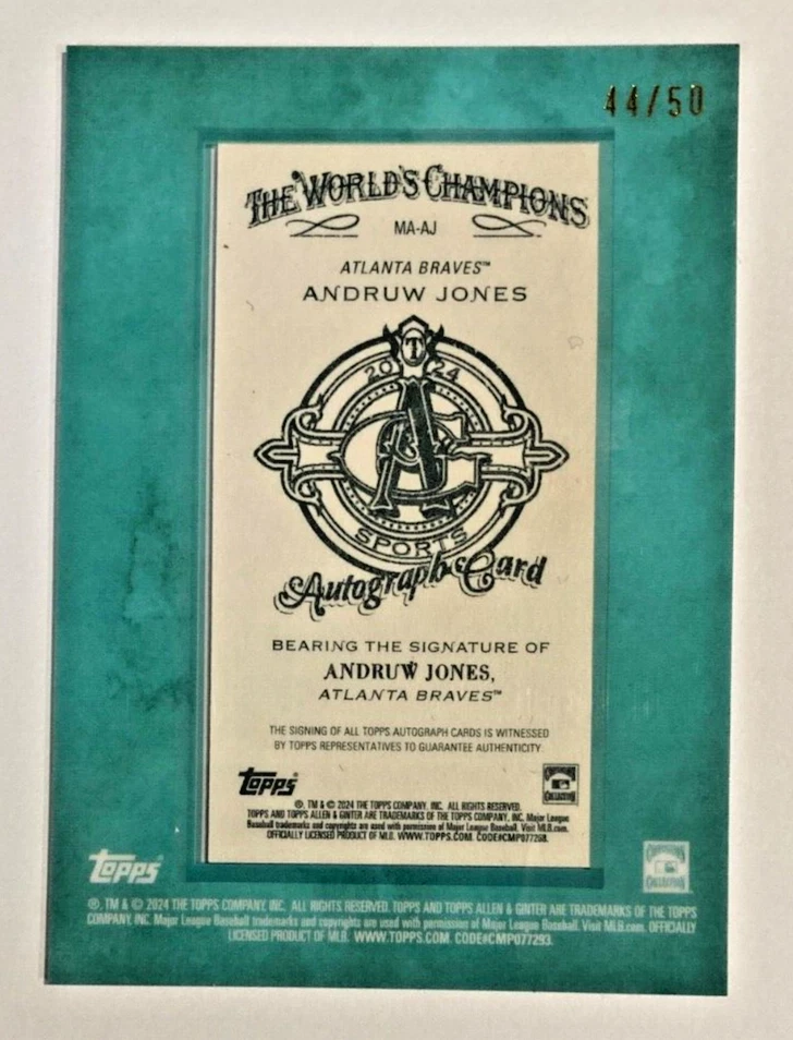 2024 TOPPS ALLEN GINTER ANDRUW JONES MINI FRAMED AUTO BLUE SP /50 ATLANTA BRAVES