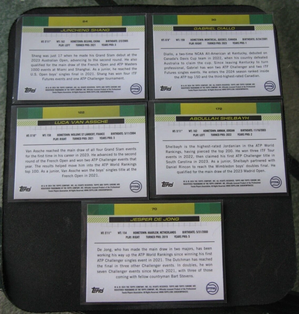 2024 TOPPS CHROME 5-CARD RC MENS TENNIS LOT Shang/Diallo/Assche/Jong/Shelbayh