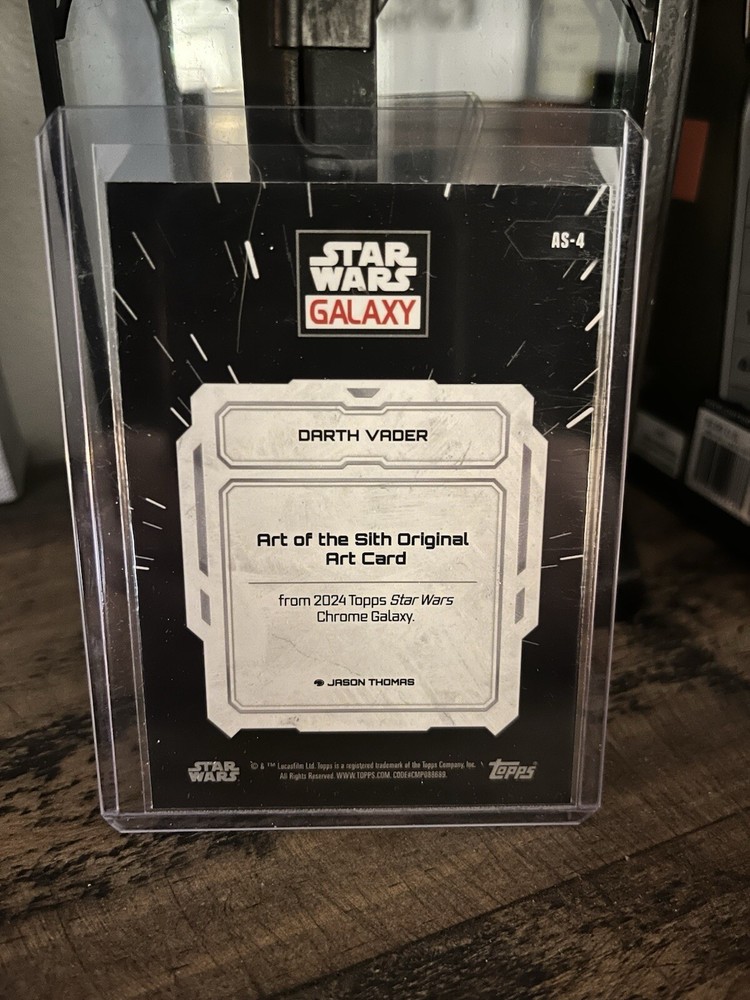 Language:EnglishFeatures:InsertGenre:Sci-Fi, Adventure, ActionOriginal/Licensed Reprint:OriginalAutographed:NoFeatured Person/Artist:James Earl Jones, David ProwseFranchise:Star WarsCard Size:StandardParallel/Variety:RefractorMovie:Star WarsCard Number:AS-4Manufacturer:ToppsInsert Set:Art of the SithVintage:NoCharacter:Darth VaderCountry/Region of Manufacture:United StatesIllustrator:Jason ThomasType:Non-Sport Trading CardSet:Star Wars GalaxyMaterial:Card StockYear Manufactured:2024Card Name:Darth Vader Art of the Sith Original Art CardConvention/Event:Star Wars Celebration