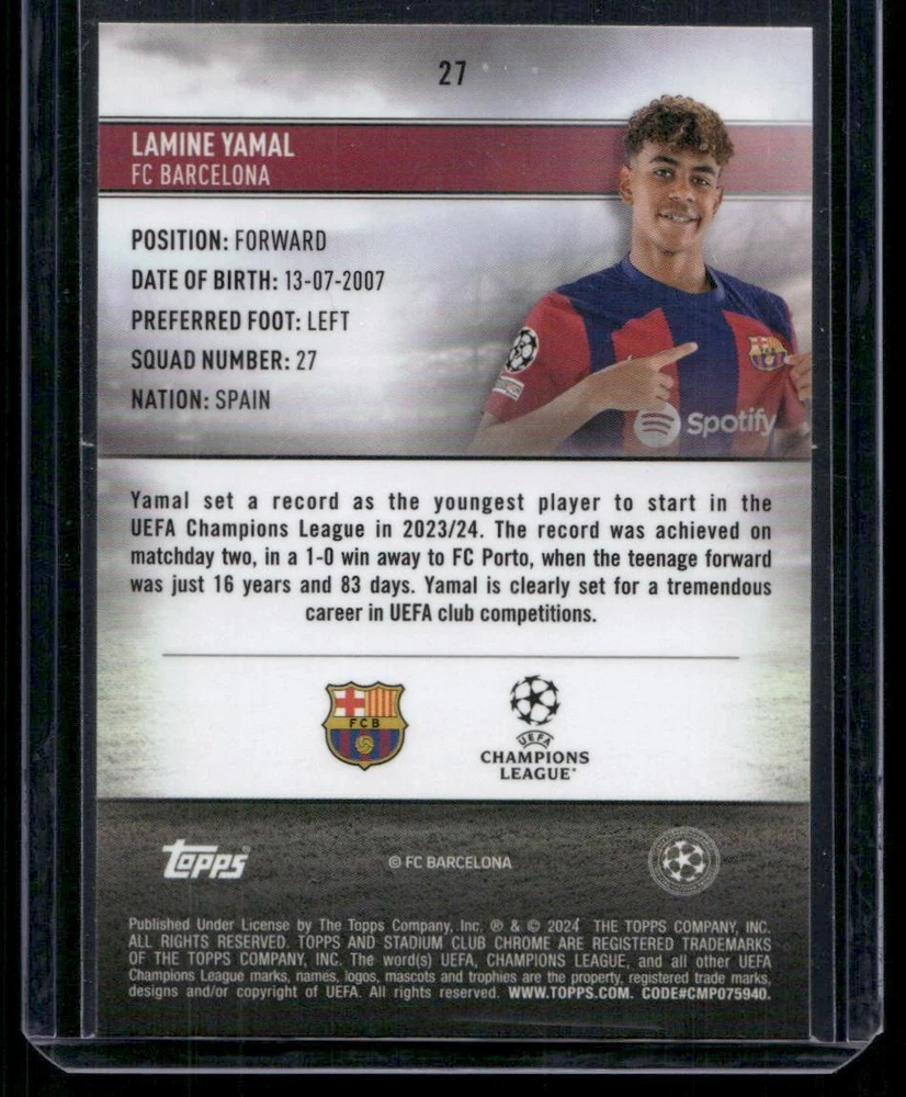 2024 Topps Stadium Club Chrome Soccer #27 Lamine Yamal