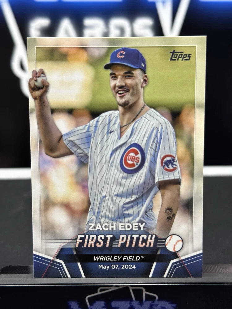 This 2024 Topps Update First Pitch trading card features Zach Edey of the Chicago Cubs. The card is part of the 2024 Topps Update Series and is an original, ungraded, and near mint or better conditioned card. The card number is FP-10 and it is a single card with an insert parallel/variety. The card is perfect for Major League Baseball (MLB) fans and collectors who are looking for a rookie card of Zach Edey. The card is not autographed and is not a vintage or licensed reprint. It is a great addition to any sports trading card collection and is a must-have for fans of the Chicago Cubs.