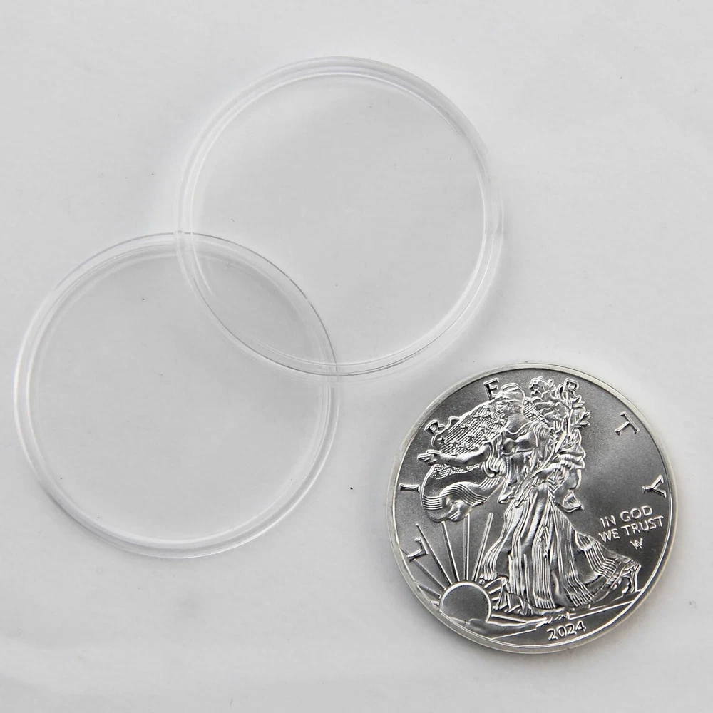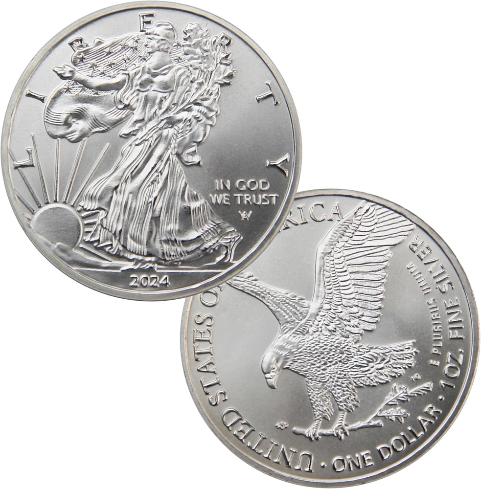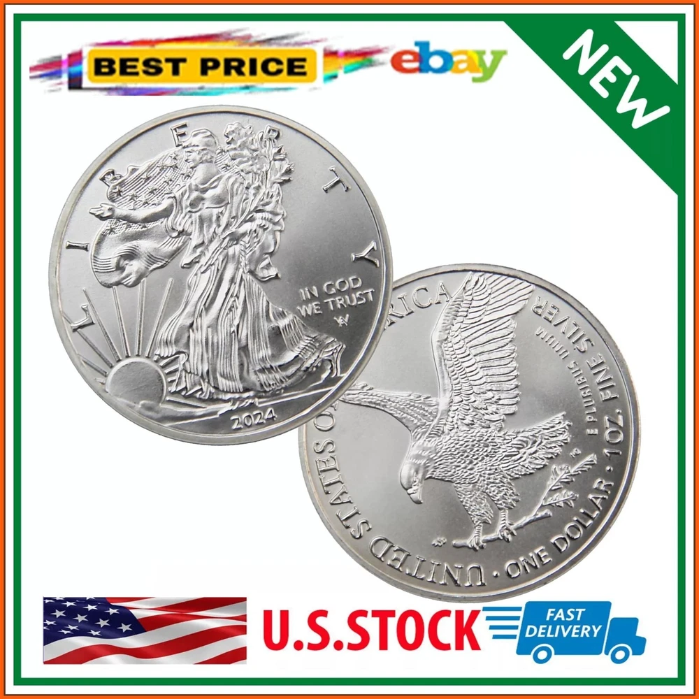 Free eBay listing template designed by dewiso.com 2024 The United States Statue of Liberty Coin Eagle Coin Silver Plated Coin 1oz Uncirculated Commemorative Coin About this item: ❤1.High quality materials and craftsmanship: Made of high quality iron alloy material, high strength, wear-resistant, anti-rust, durable. a sliver-plated process, making its appearance bright and gorgeous. 1.57 inches(40mm) diameter 0.12 inches(3mm) thick, moderate in size, convenient for carrying and display. ❤2.Transparent plastic case: The commemorative coin comes with a transparent plastic case designed to protect the coin from oxidation, scratches, and other external damages. The case is completely transparent, allowing for a clear display of the coin's obverse and reverse sides. ❤3.The obverse design typically features the head of the Statue of Liberty wearing a crown, holding a branch of olive and a bundle of arrows, with the background of a rising sun. ❤4.The reverse design usually depicts a soaring eagle with outstretched wings clutching a bundle of arrows, symbolizing strength and freedom. ❤5.Use this coin as an art collectible, business gift, home decor, or thoughtful gift. The coin size is just right and suitable for display or pocket storage. Product Description: The Statue of Liberty and the soaring eagle symbolize our reverence for freedom, with our motto being "In God We Trust." The coin is sized just right for display or carrying in a pocket. Note: This challenge coin has no monetary value Worry Coin Meditation Contact us We can be contacted at any time through eBay messages if you have any questions, comments or product requests. We will respond to you within 24 hours and do our best to help you out! We encourage our customers to contact us with any questions or concerns! We'd like to be sure you are completely satisfied with your purchase Thanks fot shopping with us !!