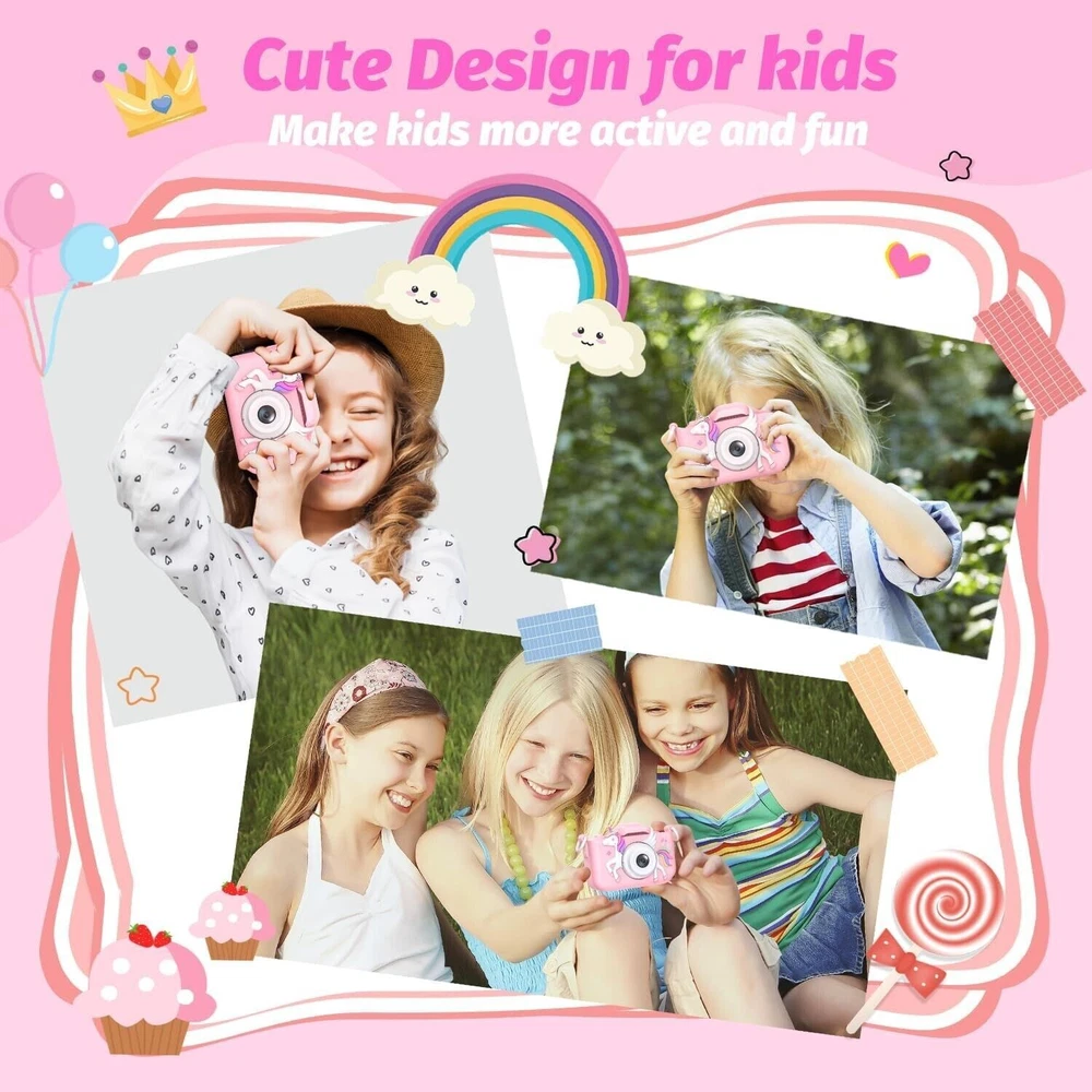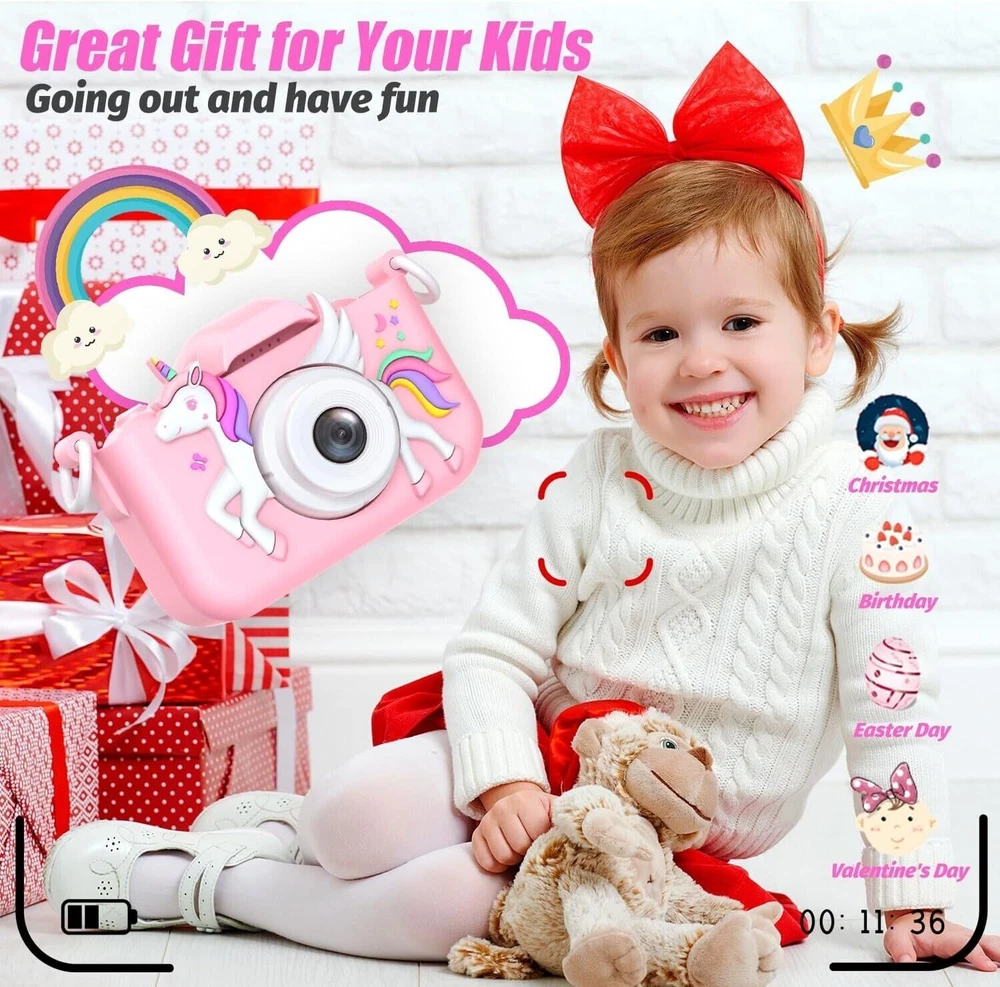 2024 Upgrade Kids Camera for Girls, Christmas Birthday Gifts for Girls Boys, 108 【Perfect Gift Toy for Kids Boys Girls】 This cute cartoon kids toy camera is a great choose as a excellent birthday gift, christmas gift, new year gift or holiday gift for your children boys and girls age 3-12 years. It supports selfie, video mode and 3 puzzle games, can develop kids imagination and creativity, enhance the fun of parent-child interaction. 【Upgraded Specially Design for Children】Upgraded to dual-camera configuration, Easy to take selfies. Just open the switch key to enjoy the fun of taking photos. The cute cartoon soft silicone casing provides the kids camera with nti-drop design, allows kids to enjoy happy and freedom photography moments without worries of broken. The camera for kids also specially designed a durable lanyard for portability, children can hang the camera on their neck, makes this toy easy to use outdoor 【Mini Kids Camera with Big Fun】The Kids selfie camera comes with Multi-Functions, it is equipped with functions such as games, selfie photo capture, real-time video recording, time lapse capture, video, music player, date setting. Download the photos and videos to a computer using the USB cable and share them with family and friends. Kids can better record their happy childhood, it will be a wonderful and precious memory when they grow up. 【Built-in USB Rechargeable Powerful Battery and 32G SD card】 With the built-in large capacity lithium battery can continuously taking photos for 2-3 hours after full charged! Kids digital camera with large 32GB SD card which can store 5,000 pictures allows kids to shoot anywhere anytime, without being worried about which to delete in case of lack of memory. They can also decorate their Own Frame or favorite scene while taking photos (28 funny frames and 6 filters) 【Why you Choose Our Product】It comes with: 1x Kids Camera with Cartoon Protective, 1x Exquisite packing box, 1x USB Charging Cable, ,1x 32GB Memory Card, 1x Hanging Lanyard, 1x User manual. If you have any questions with our products or service, please contact us anytime, and we will provide you with perfect solutions as soon as possible, We're sure the child will have a blast. › See more product detail ---【Perfect Gift Toy for Kids Boys Girls】 This cute cartoon kids toy camera is a great choose as a excellent birthday gift, christmas gift, new year gift or holiday gift for your children boys and girls age 3-12 years. It supports selfie, video mode and 3 puzzle games, can develop kids imagination and creativity, enhance the fun of parent-child interaction. ---【Upgraded Specially Design for Children】Upgraded to dual-camera configuration, Easy to take selfies. Just open the switch key to enjoy the fun of taking photos. The cute cartoon soft silicone casing provides the kids camera with nti-drop design, allows kids to enjoy happy and freedom photography moments without worries of broken. The camera for kids also specially designed a durable lanyard for portability, children can hang the camera on their neck, makes this toy easy to use outdoor ---【Mini Kids Camera with Big Fun】The Kids selfie camera comes with Multi-Functions, it is equipped with functions such as games, selfie photo capture, real-time video recording, time lapse capture, video, music player, date setting. Download the photos and videos to a computer using the USB cable and share them with family and friends. Kids can better record their happy childhood, it will be a wonderful and precious memory when they grow up. ---【Built-in USB Rechargeable Powerful Battery and 32G SD card】 With the built-in large capacity lithium battery can continuously taking photos for 2-3 hours after full charged! Kids digital camera with large 32GB SD card which can store 5,000 pictures allows kids to shoot anywhere anytime, without being worried about which to delete in case of lack of memory. They can also decorate their Own Frame or favorite scene while taking photos (28 funny frames and 6 filters) ---【Why you Choose Our Product】It comes with: 1x Kids Camera with Cartoon Protective, 1x Exquisite packing box, 1x USB Charging Cable, ,1x 32GB Memory Card, 1x Hanging Lanyard, 1x User manual. If you have any questions with our products or service, please contact us anytime, and we will provide you with perfect solutions as soon as possible, We're sure the child will have a blast. › See more product detail 2024 Upgrade Kids Camera for Girls, Christmas Birthday Gifts for Girls Boys, 108 【Perfect Gift Toy for Kids Boys Girls】 This cute cartoon kids toy camera is a great choose as a excellent birthday gift, christmas gift, new year gift or holiday gift for your children boys and girls age 3-12 years. It supports selfie, video mode and 3 puzzle games, can develop kids imagination and creativity, enhance the fun of parent-child interaction. 【Upgraded Specially Design for Children】Upgraded to dual-camera configuration, Easy to take selfies. Just open the switch key to enjoy the fun of taking photos. The cute cartoon soft silicone casing provides the kids camera with nti-drop design, allows kids to enjoy happy and freedom photography moments without worries of broken. The camera for kids also specially designed a durable lanyard for portability, children can hang the camera on their neck, makes this toy easy to use outdoor 【Mini Kids Camera with Big Fun】The Kids selfie camera comes with Multi-Functions, it is equipped with functions such as games, selfie photo capture, real-time video recording, time lapse capture, video, music player, date setting. Download the photos and videos to a computer using the USB cable and share them with family and friends. Kids can better record their happy childhood, it will be a wonderful and precious memory when they grow up. 【Built-in USB Rechargeable Powerful Battery and 32G SD card】 With the built-in large capacity lithium battery can continuously taking phot