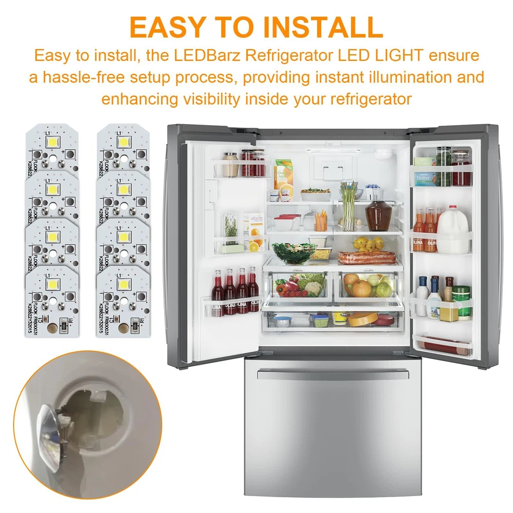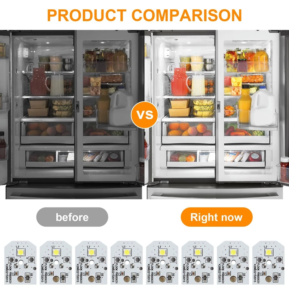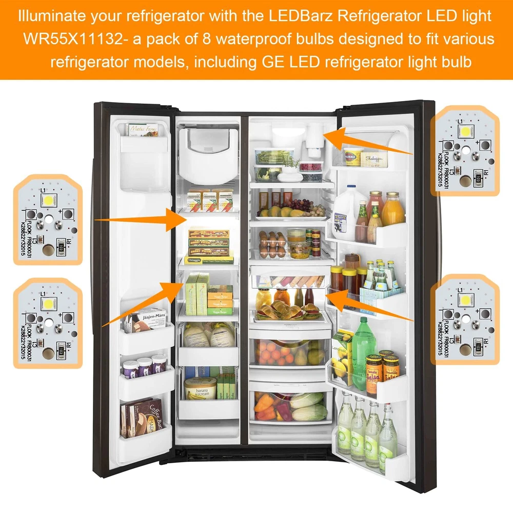 refrigerator LED light perfect solution for your appliance lighting needs. Our model WR55X11132 is a pack of 8 excellent quality LED lights designed to enhance your kitchen experience. Say goodbye to flickering or dim lights with these waterproof and easy-to-install lights. Compatible with various refrigerator appliance models, the Refrigerator LED LIGHT is the ideal choice for those looking for a reliable refrigerator light bulb replacement. These LED refrigerator lights are guaranteed to provide bright and consistent lighting, ensuring you can see everything in your fridge clearly. Upgrade your refrigerator lighting with the Refrigerator LED LIGHT today and enjoy the benefits of energy-efficient, long-lasting LED technology. Illuminate your refrigerator with ease and style, and never worry about poor lighting in your kitchen again. Don't settle for subpar lighting in your refrigerator. Choose the Refrigerator LED light for a reliable, efficient, and durable lighting solution. Say goodbye to dim and flickering lights and hello to bright and consistent illumination with our premium LED bulbs. Enhance your kitchen experience with the Refrigerator LED LIGHT. Order yours now and see the difference our LED lightcan make in your appliance. Illuminate your refrigerator with the refrigerator parts & accessories WR55X11132- a pack of 8 waterproof bulbs designed to fit various refrigerator models, including GE led refrigerator light bulb,refrigerator led ge Say goodbye to flickering and dim lights in your fridge - these excellent quality LED lights offer a bright and energy-efficient solution for your refrigerator light replacement needs Easy to install, the Refrigerator LED LIGHT ensure a hassle-free setup process, providing instant illumination and enhancing visibility inside your refrigerator Compatible with GE refrigerator:GFE26GSHBSS GFE26GSHCSS GFE26GGKEBB GFE26GGKEWW GFE26GGKFBB GFE26GGKFWW GFE26GMKCES GFE26GMKDES GFE26GMKEES GFE26GMKFES GNE29GGKCWW GNE29GGKDBB GNE29GGKDWW GNE29GGKEBB GNE29GGKEWW GNE29GGKFBB GNE29GGKFWW GNE29GMKCES GNE29GMKDES GNE29GMKEES GNE29GSKCSS GNE29GSKDSS GNE29GSKESS GNE29GSKFSS GFE26GSKGSS DFE28JSKGSS GFE26GGKGWW GFE28HSKFSS GFE28GMKGES GFE28GSKHSS GFE26GSKHSS GFE26GMKGES GFD28GSLCSS GFE26GGHCBB GFE26GGHCWW GFE26GGHDBB GFE26GGHDWW GFE26GGHEBB etc Fit for GE models:GFE26GGHEWW GFE26GGHFBB GFE26GGHFWW GFE26GGHGBB GFE26GGHGWW GFE26GGKBBB GFE26GGKBWW GFE26GMHBES GFE26GMHCES GFE26GMHDES GFE26GMHEES GFE26GMHGES GFE26GMKBES DFE28JBLCTS DFE28JBLDTS DFE28JELCDS DFE28JELDDS DFE28JMKGES DFE28JMKHES DFE28JSKHSS GFD28GBLCTS GFD28GBLDTS GFD28GELCDS GFD28GELDDS GFD28GMLCES GFE26GGHBBB GFE26GGHBWW GFD28GMLDES GFD28GSLDSS etc