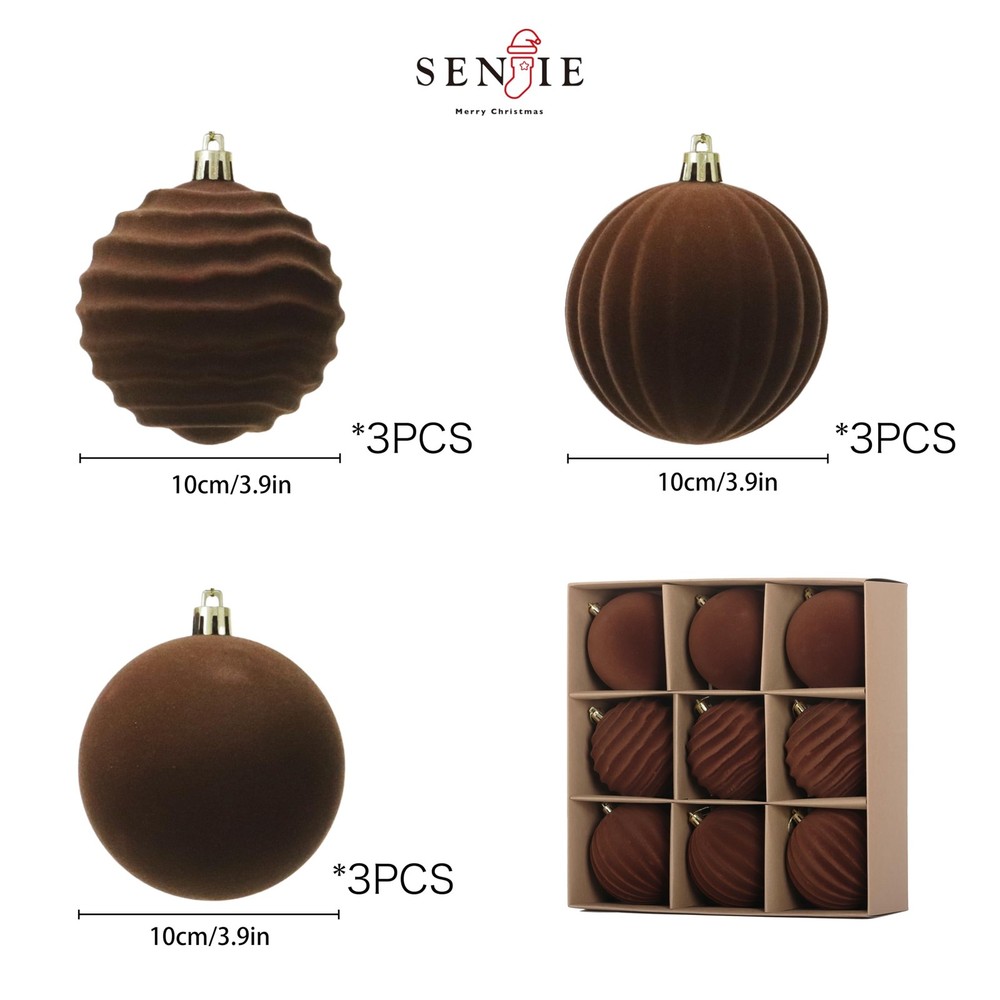 Package List:the package contains 9PCS of flocked Christmas ball ornaments,3.94inches in diameter,solid color packed to choose,nice texture can fully meet your needs for decorating Easy to Hang: the velvet Christmas tree ornaments are equipped with a metal buckle and hanging rope,durable and reliable,easy to hang,offering functionality and aesthetics, adding a relaxing atmosphere to your house Flocked Design: the Christmas ornaments balls enjoy flocking texture,scattering these velvet Christmas hanging balls can create a retro and beautiful effect, transforming your home into a distinctive and elegant winter scene Reliable and Practical: the velvet Christmas ornaments balls are mainly made of quality plastic, with a flocking texture, not easy to fade, deform, break, and wear out, easy to hold, suitable for long time use, enhancing the aesthetics of your Christmas tree and overall festive decor for many festive seasons to come Versatile Occasions: the flocked Christmas tree ornament ball isn't restricted to tree decorating, you can also apply the ball on doors, Christmas trees, windows, walls, and porch in your living room, bedroom, fireplace, and other places, ideal for birthdays, Halloween, Christmas, and other festivals, making the festive atmosphere of the holiday spread in every corner of your space