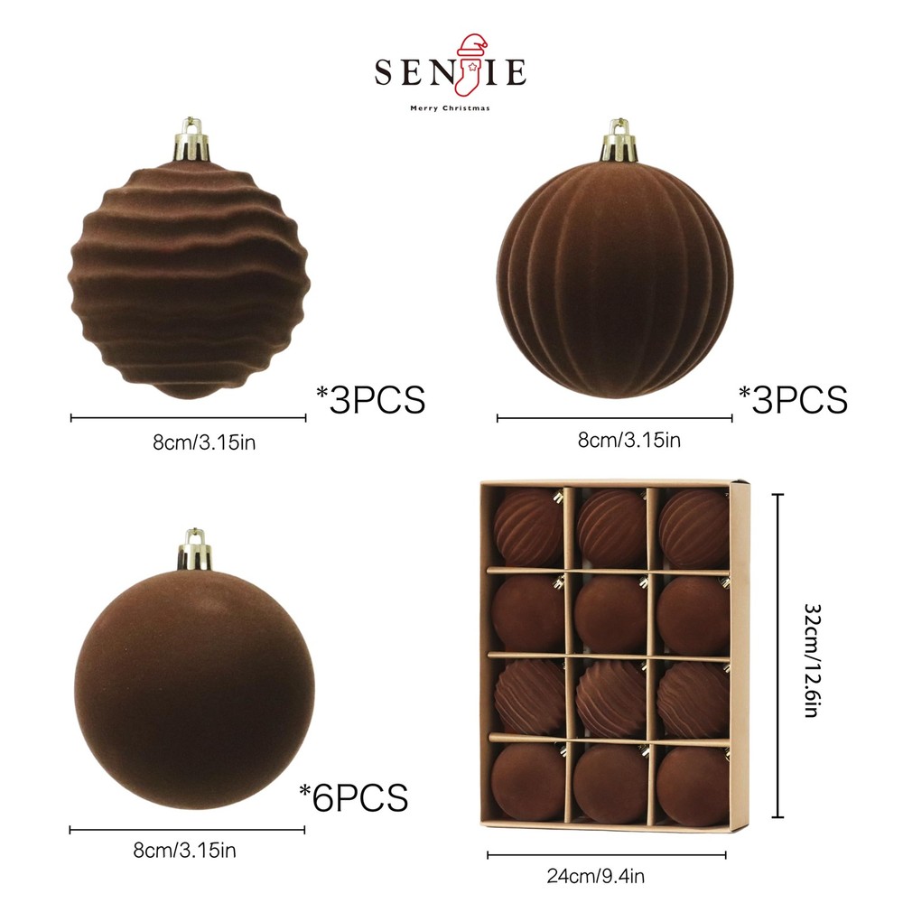 Package List:the package contains 12PCS of flocked Christmas ball ornaments,3.15inches in diameter,solid color packed to choose,nice texture can fully meet your needs for decorating Easy to Hang: the velvet Christmas tree ornaments are equipped with a metal buckle and hanging rope,durable and reliable,easy to hang,offering functionality and aesthetics, adding a relaxing atmosphere to your house Flocked Design: the Christmas ornaments balls enjoy flocking texture,scattering these velvet Christmas hanging balls can create a retro and beautiful effect, transforming your home into a distinctive and elegant winter scene Reliable and Practical: the velvet Christmas ornaments balls are mainly made of quality plastic, with a flocking texture, not easy to fade, deform, break, and wear out, easy to hold, suitable for long time use, enhancing the aesthetics of your Christmas tree and overall festive decor for many festive seasons to come Versatile Occasions: the flocked Christmas tree ornament ball isn't restricted to tree decorating, you can also apply the ball on doors, Christmas trees, windows, walls, and porch in your living room, bedroom, fireplace, and other places, ideal for birthdays, Halloween, Christmas, and other festivals, making the festive atmosphere of the holiday spread in every corner of your space
