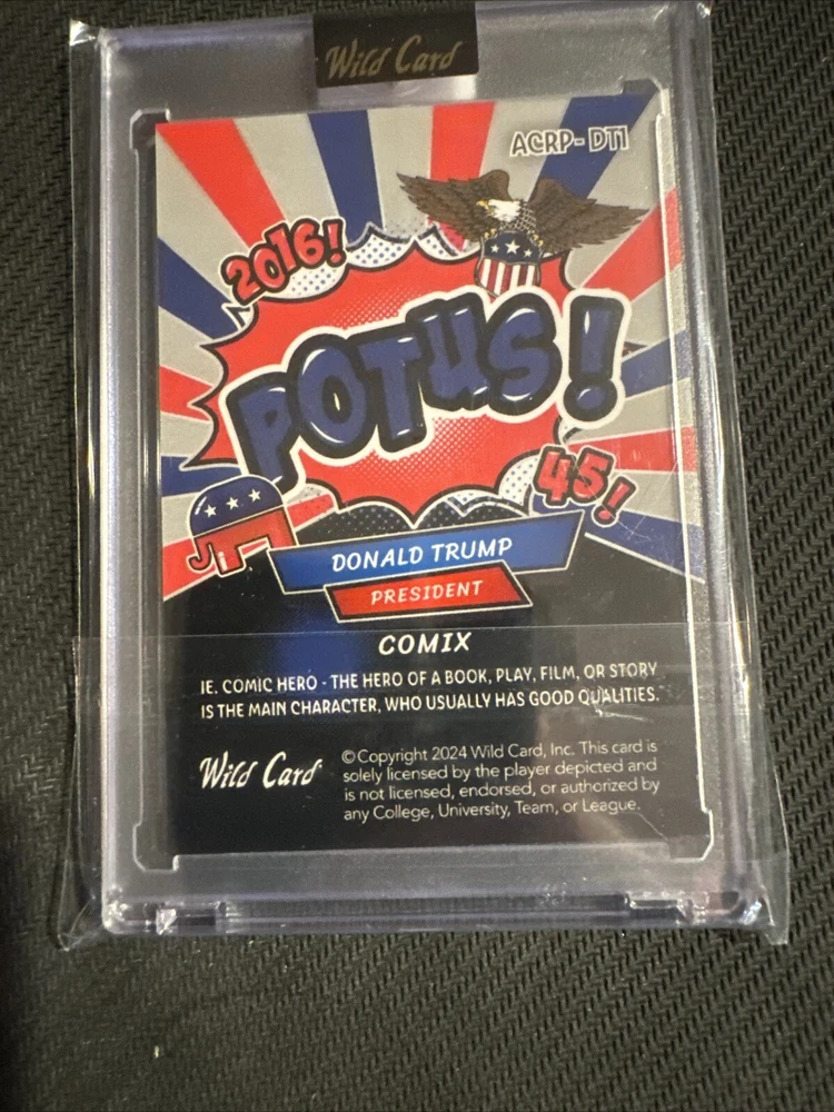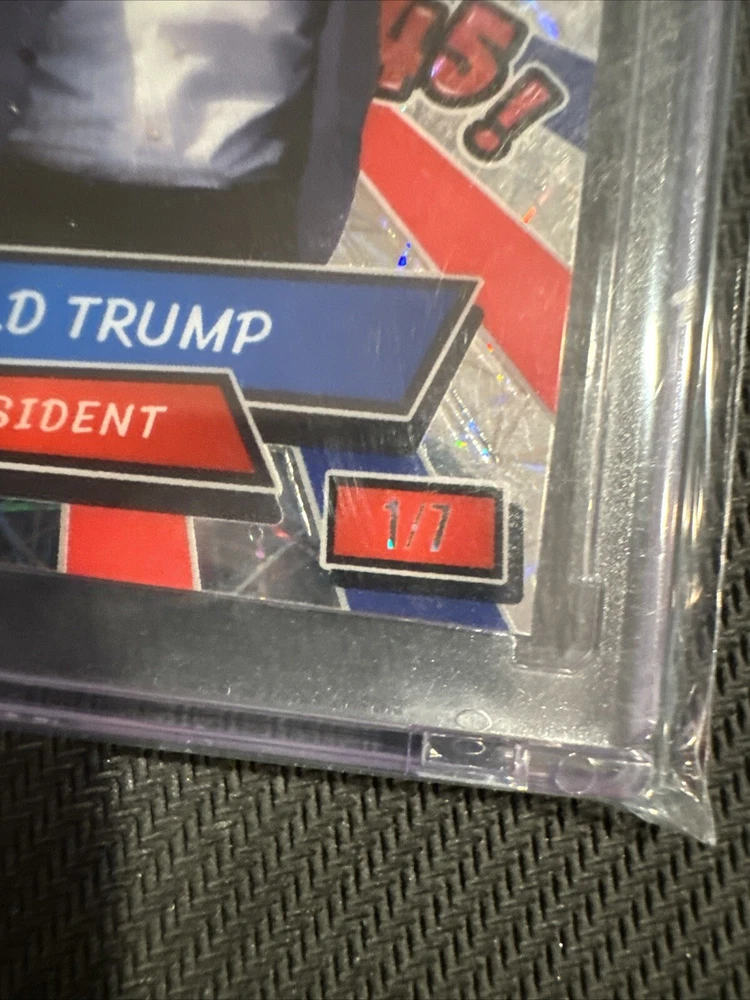 This 2024 Wild Card Allumination trading card features President Donald J Trump in a non-sport trading card type. The card is an original and is signed by the featured person/artist, President Donald J Trump. The manufacturer of the card is Wild Card and it was manufactured in 2024. The card is part of the Allumination set and is a Comix feature. The autographed status of the card is not specified in the provided aspects. The vintage status of the card is not specified in the provided aspects. The card is a great addition to any collection and is sure to be a favorite among fans of President Donald J Trump and the Allumination franchise.