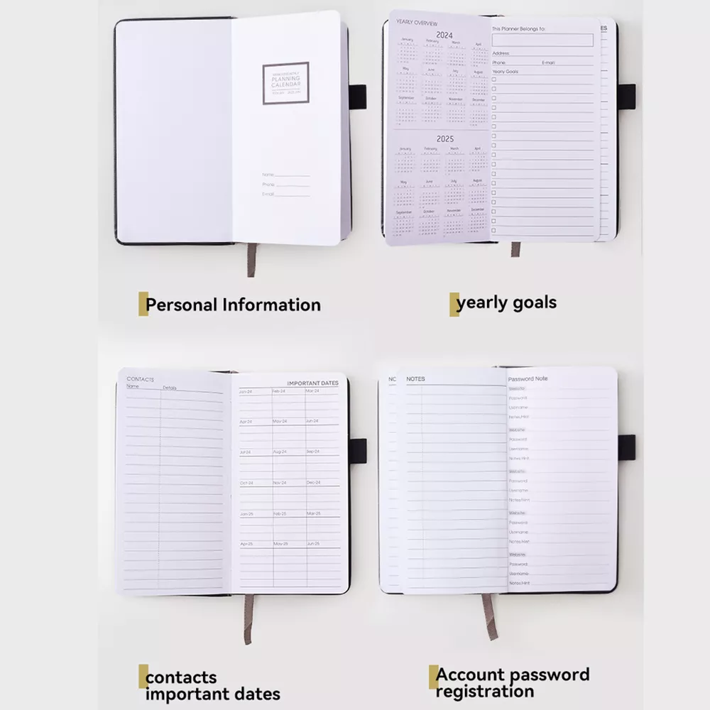2024-2025 Monthly Weekly Planner Work Schedule Binder With Elastic Strap Bullet Points: Enhanced Planning Precision: This monthly weekly planner covers January 2024 to December 2025. Each daily block is marked with popular holidays and Julian dates, and boasts rich planning functions like an annual plan, holiday list, notes page, and important dates Enough space for writing: Enough space for organization and arrangement of your schedule, making it easier to record more memos and notes, enhancing your productivity and preparing you for success Ink bleed-proof paper: With ink bleed-proof paper, effectively record every detail to ensure clear visibility of plans, boosting seamless scheduling without readability concerns Plan traveling: With our monthly weekly planner, you can record and view your plans anytime, anywhere! Its compact and portable A6 (4 x 6 inches) size easily fits in your pocket or handbag, and the pen loop design makes carrying your pen a breeze Ensure Maximum Protection: Keep your monthly and weekly schedule organized with our waterproof leather planner, featuring an elastic closure cord that prevents damage to contents With a complete time period from January 2024 to December 2025, you'll have enough space for organization and arrangement. Product weight: 210g Product size: 10x18x2.5cm/3.94x7.09x0.98 inches Product material: paper, PU leather Product list: Planning book * 1 piece 1.You can make a Credit payment via Paypal.Paypal will let you use MasterCard,Visa to pay. 2.Payment should be completed within 5 days after auction closed, or unpaid dispute will be filed for an closing auction.An unpaid case will be filled after 4 days. ● We strive for 100% customer satisfaction ! ● Positive Feedback is very important to us. ● We hope that you contact us immediately BEFORE you give us neutral or negative feedback, so that we can satisfactorily address your concerns. ● We promise to offer the lowest price and high quality produce. Dear buyers : ● Welcome to my store ! ● Your satisfaction is our top goal,we appreciate your patronizing. ● If you have any questions, please contact us before leave negative or neutral feedback, we will try our best to solve the issue to your satisfaction, thanks ! ● If you are satisfied with our service, please rate the details of the transaction (Detailed Seller Ratings) on eBay. ● Please always talk to us via ebay Message. ● We appreciate your business and look forward to growing our e-Bay sales with satisfied customers.