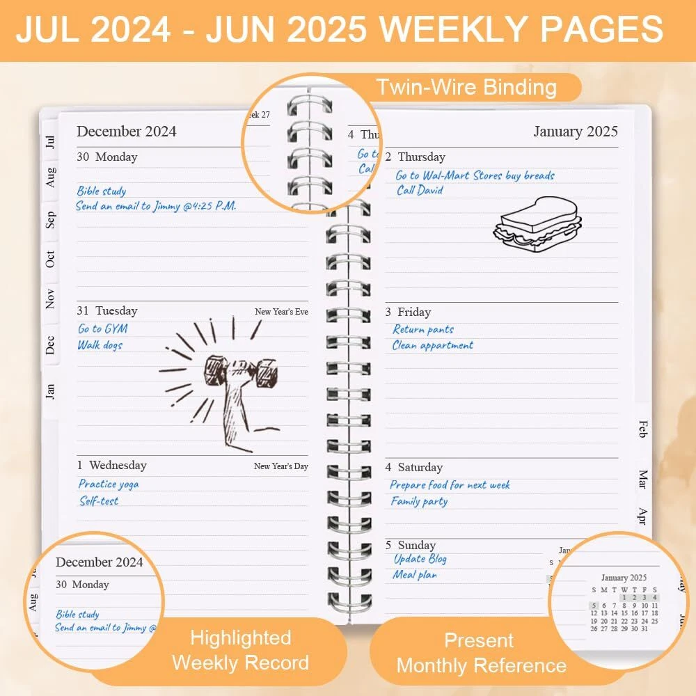2024-2025 Pocket Planner, A6 Weekly Planner with Monthly Tabs, Run July 2024-June 2025, Elastic Closure, Twin-Wire Binding, Easy to Organize Your Daily Life, 3.75 x 6.75 In, Pocket Planner 2024-2025 This compact 2024-2025 monthly and weekly planner measuring 3.75 x 6.75 Inch, is a simple and elegant planner(2024 July-2025 June) which could keep you organized everywhere you go. Simple page designs and plenty of room for all of your important information. 12 Month planner contains: yearly overview (calendar of 2024-2025) 2 contact pages 53 week sections 10 notes pages(lined) Each monthly spread contains 4-5 weekly pages, 2 pages per week. Weekly spread include ample space to write down your daily schedule, appointments, activities, week's focus, to do list/goal and keep track of all days clearly with the weekly view. This distinctive monthly & weekly planner features high quality 120gsm white paper for easy writing and reducing ink leakage, erase fraying and shade issues, providing clean writing space for your appointments, to-dos and reminders. This monthly and weekly planner responds well to fountain pen, gel pen, roller pen, ballpoint pen, highlighter, pencil and etc. Monthly calendar tabs allow easy access to each month’s plans. Sturdy and flexible covers to protect the inner pages well, thick paper for smooth writing, strong twin-wire binding etc, all these details demonstrate high quality. This personal organizer features flexible structures that allow you to keep track of goals, tasks, appointments, project, works, habbits etc. Perfect for planner, organizer, academic agenda or note pad for school, work or home or makes a great gift. Plan, create and schedule your daily life with this gorgeous monthly & weekly planner now. PLANNER OVERVIEW - Pocket planner 2024-2025 contains yearly overview (calendar of 2024-2025), 1 quick reference information, 2 contact pages, 53 week sections and 10 notes pages(lined) for note-taking, lists, goals etc, which help you manage your life efficiently and achieve your goals perfectly MONTHLY & WEEKLY - 2024 July-2025 June. Each monthly spread contains 4/5 weekly pages, 2 pages per week. Weekly spread include ample space to write down your appointments, daily schedule, week's focus, to do list / goals and keep track of all days clearly with the weekly view INCREASE PRODUCTIVITY - This monthly & weekly planner 2024-2025 come with weekly spread pages for to do lists, bullet journaling, scheduling, project tracking, which make it easy to increase productivity and reach your goals TABS - Pocket planner 2024-2025 with each month is separated with laminated tabs for easy scrolling of your search, multi-color covers are optional, teal, rose, twig and yellow flower SUPERIOR QUALITY - Monthly planner 2024-2025 with sturdy and flexible cover to protect the inner pages well. Thick paper to reduce ink leakage, erase fraying and shade issues. Strong metal and lay-flat twin-wire binding. Plan, create and schedule your daily life with this gorgeous weekly & monthly planner Shipping from the USA All of our products are shipped from the USA, ensuring quick delivery to your destination. Payment We offer the following payment methods: PayPal, credit card, bank transfer, and eBay's secure payment system. Free Shipping & Free Returns Shipping within the USA is FREE. Additionally, any return is absolutely free for you. Risk-Free Purchase You have the option to return an item within 30 days without any justification. We cover the return shipping costs! Fast Shipping We ship immediately upon receipt of payment. Generally, the package is delivered within 2-3 days in the USA. If it takes longer, we will contact you. Quality and Costs Made in Europe, USA, China No customs fees or additional charges Total satisfaction guarantee Invoice with declared VAT available upon request in .pdf format Feedback Your feedback is very important to us. After you pay for your purchase, you will automatically receive positive feedback from us.