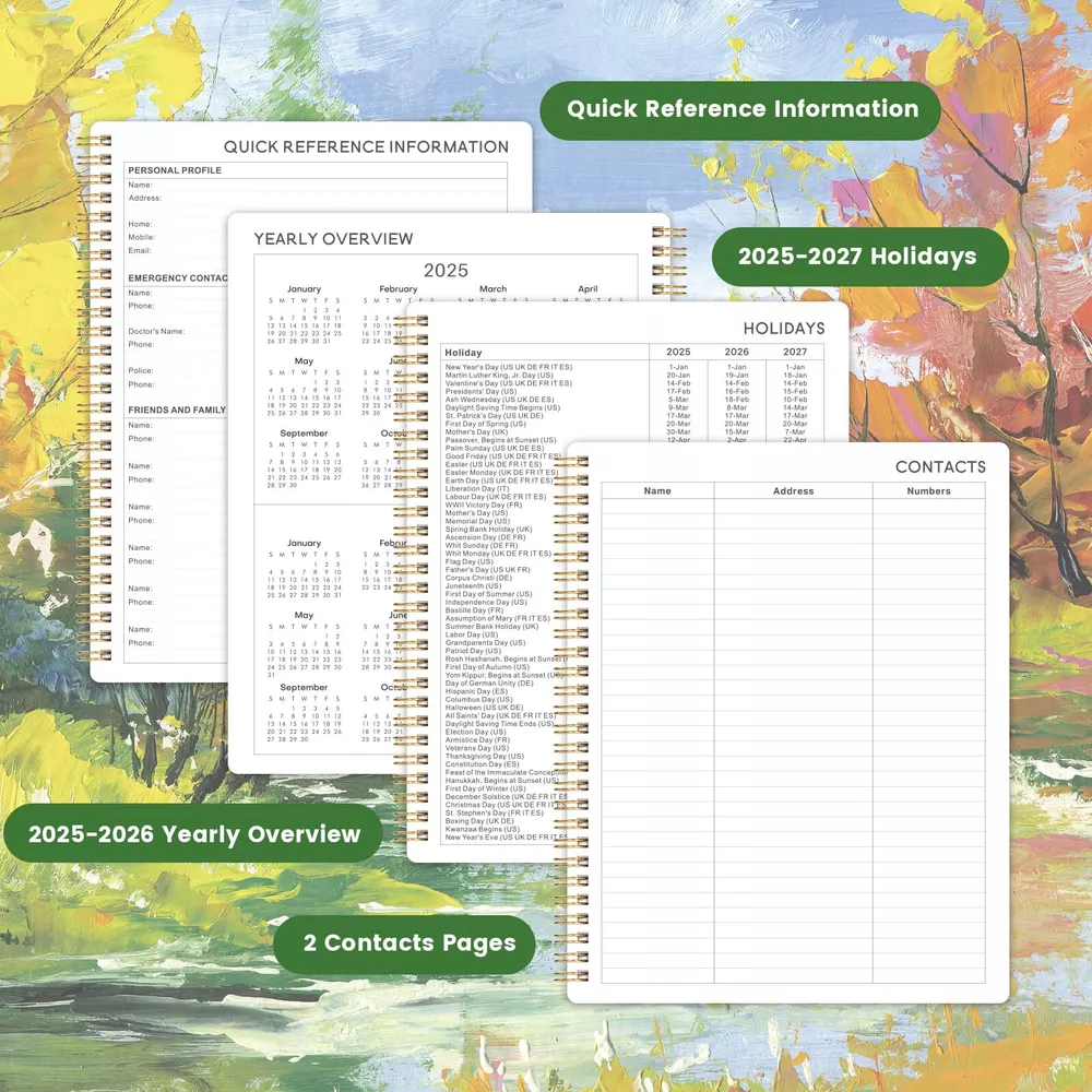 ☘️ Planner 2025 - This 2025 calendar planner is designed to span the entire year of 2025, from January to December 2025. With dimensions of 8" x 10", it's perfectly portable, making it an ideal choice for students to toss in their backpack or professionals for their daily commute. ☘️ Monthly Planning Reimagined - Navigate through the months with our clear monthly planning pages. Each page offers a broad view, with each day's space measuring 1.65" x 1.69", perfect for jotting down appointments and tasks. A reference calendar for the past, present, and future months aids in extended planning. Plus, a dedicated note section and marked holidays keep your important dates and creative thoughts in check. ☘️ Weekly Planning Reinvented - Dive into the weekly planning pages, designed with ample lined space to list your tasks from Monday to Sunday. Complete a task? Tick it off with satisfaction. These pages provide a clear and concise weekly layout, ensuring you never lose sight of your daily agenda. ☘️ Elegant Aesthetics for the 2025 Planner - Crafted with a touch of sophistication, the 2025 monthly planner boasts a flexible cover depicting a serene golden autumn scene, offering a pleasant experience. Durable twin-wire binding and rounded corners enhance its sturdiness and portability, making it a reliable tool for your daily planning needs. ☘️ Ideal for Students & Office Workers – Students will find this planner 2025 a great tool for keeping track of their academic calendars, assignments, and exam schedules. Office workers can use it for meeting minutes, project timelines, and personal goal setting. It can also be given as a gift to friends, classmates, and friends who like to write by hand.