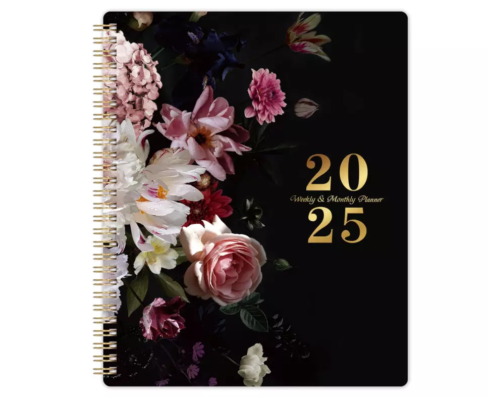 2025 Floral Planner – Your Perfect Planning Companion! Stay organized and stylish in 2025 with this beautifully designed floral planner, perfect for all your scheduling and planning needs. From January 2025 to December 2025, this planner offers ample space and functional features to help you stay on top of your tasks throughout the year. 2025 Planner Overview This planner covers 12 months, from January to December 2025, and comes in a practical 8" x 10" size. Its spacious design provides plenty of room for daily planning and scheduling, ensuring you have all the space you need to manage your busy life. Monthly Pages The monthly planning pages include a 12-month calendar overview, with lined daily blocks for easy note-taking. You'll also find holiday reminders, a lined note section, and three reference calendars (past, present, and future) at the page corners. These features help you better organize and plan your month with ease. Weekly Pages The weekly pages clearly list dates from Monday to Sunday on two pages, with a lined section for each day where you can jot down your plans. A small checkbox next to each task helps you track progress and stay organized. Additionally, each week features a three-month reference calendar at the top for quick planning. Functional and Durable Design This planner is designed with functionality and durability in mind. It includes: Stamped hardcover with a gorgeous bronzed pattern Premium thick paper to prevent ink-bleeding and feathering Strong twin-wire binding for easy handling and long-lasting use Yearly overview for a quick glance at the entire year Monthly tabs for easy navigation Quick reference information and contact pages for added convenience Holidays marked to keep you on track throughout the year Perfect Gift or Personal Use With its beautiful bronzing pattern and high-quality paper, this planner not only helps you stay organized but also adds elegance to your daily routine. It makes a thoughtful gift for friends, family, or loved ones, or a perfect personal planner to make your 2025 year truly special. Get Ready to Plan in Style The 2025 Floral Planner is more than just a calendar—it's a tool for staying organized and productive while adding a touch of beauty to your life. Don't wait—grab yours today and start planning for a successful 2025!