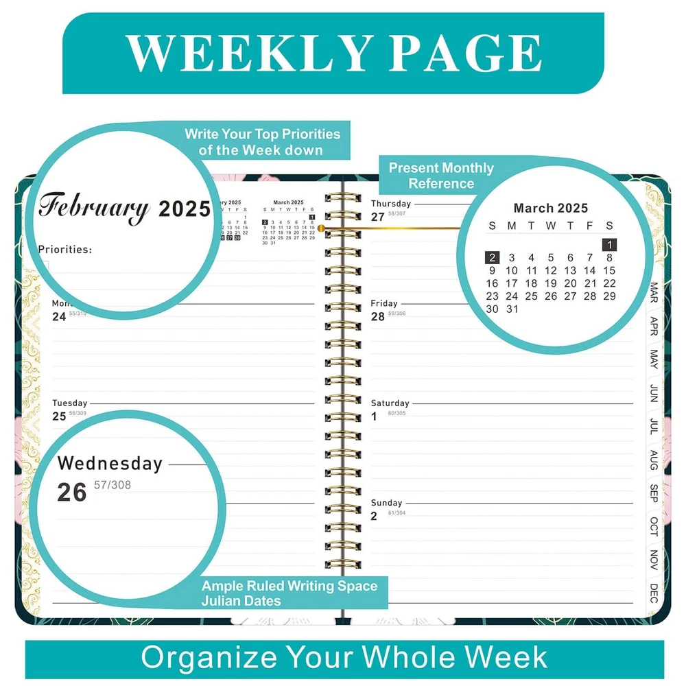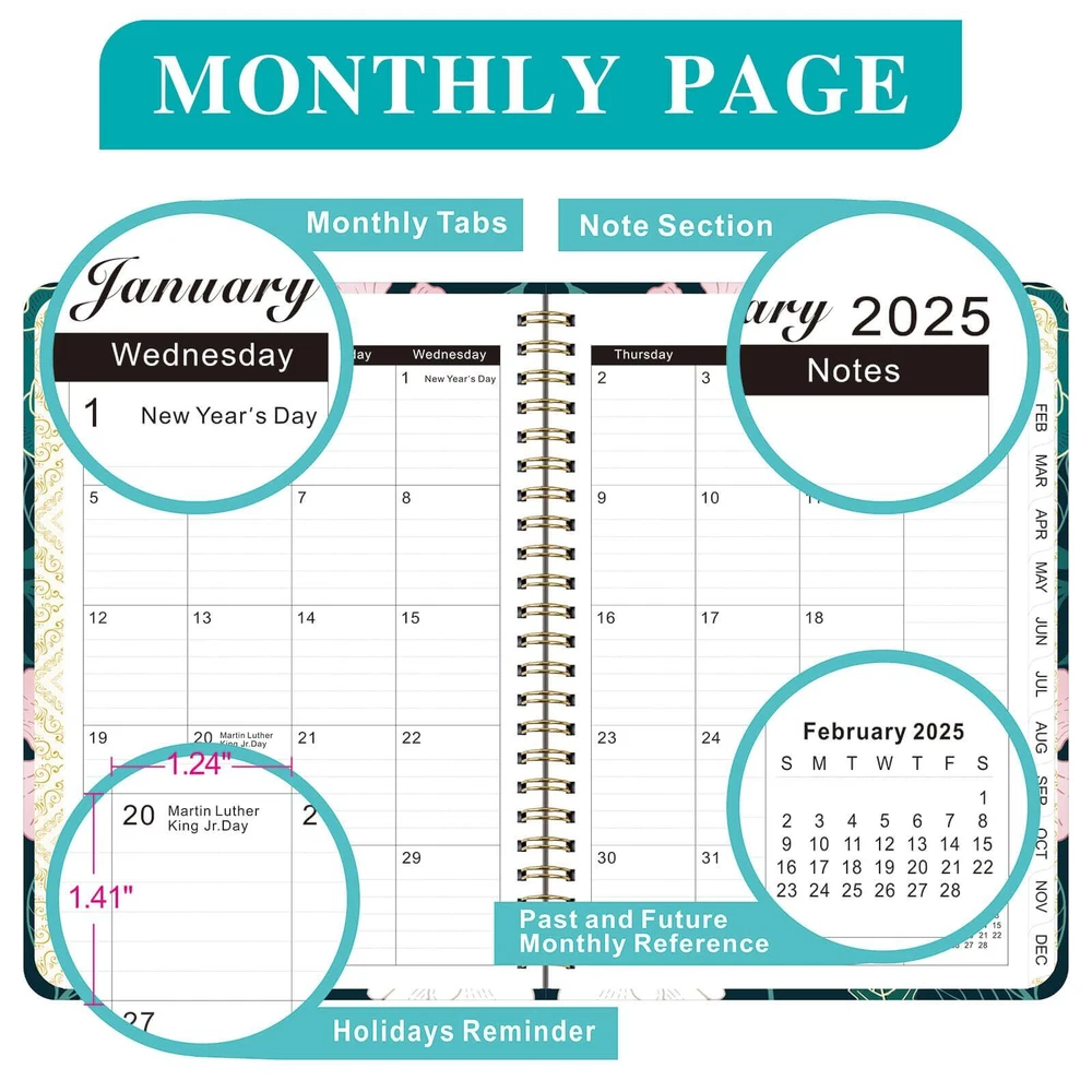 2025 Planner, Weekly and Monthly Planner from January 2025 - December 2025, Notebook Calendar Planner Agenda Planner with Tabs, Inner Pocket, Spiral Binding, Monthly Tab - A5 (6.3" x 8.5") Green 1 Planner 2025: This 2025 calendar planner covers 12 months of monthly and weekly pages for year-round planning. Additional pages feature a 2025-2026 calendar overview, personal information, holidays, contacts. 6.3" x 8.5" agenda planner is easy to use and carry away.I t is a good helper for your study or work. Monthly View Pages: Each monthly page features lined daily blocks listing major U.S. holidays and Julian dates, and the 2025 monthly planner also includes the past and previous calendar references so you can better reflect on the past and plan for the future. Weekly View Pages: Each weekly page has ample lined writing space for your appointments, activities or events, etc. List the major holidays and note the days that have passed and are left. The Priorities section will help you not forget your important tasks. Superior Quality: The 2025 calendar planner features a waterproof flexible cover, metal rounded corner edging, double wire binding, inner pocket. Made of premium acid-free paper to prevent ink bleed-through and ensure an excellent writing experience. Classic, stylish design with excellent texture. Suitable for Various Occasions: This daily planner 2025 is perfect for office professionals to track work and meeting notes, students to manage study records, and individuals at home to organize daily tasks. It also makes a thoughtful gift for friends and family. Shipping from the USA All of our products are shipped from the USA, ensuring quick delivery to your destination. Payment We offer the following payment methods: PayPal, credit card, bank transfer, and eBay's secure payment system. Free Shipping & Free Returns Shipping within the USA is FREE. Additionally, any return is absolutely free for you. Risk-Free Purchase You have the option to return an item within 30 days without any justification. We cover the return shipping costs! Fast Shipping We ship immediately upon receipt of payment. Generally, the package is delivered within 2-3 days in the USA. If it takes longer, we will contact you. Quality and Costs Made in Europe, USA, China No customs fees or additional charges Total satisfaction guarantee Invoice with declared VAT available upon request in .pdf format Feedback Your feedback is very important to us. After you pay for your purchase, you will automatically receive positive feedback from us.