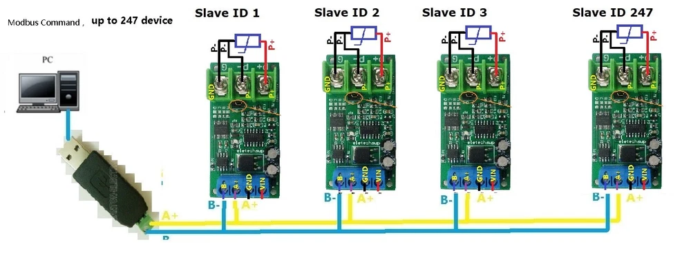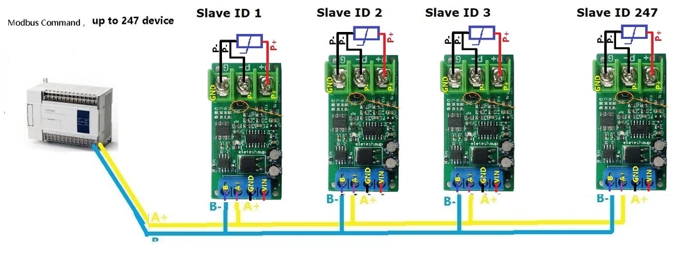Product Name: -20-400 Celsius PT100 Thermocouple Temperature Detector RTD Sensor Tester Converter RS485 Modbus Rtu Packing list(Please select the product you need): 1 pcs PTA9B01 PT100 RS485 Acquisition module 1 pcs PT100 sensor 1 pcs Matching shell Description : PTA9B01 PT100 RS485 Acquisition module Description: Working voltage: DC 8-25V(Recommend DC 12V) Working current: 8-13MA MODBUS RTU protocol, 03 read command, 06 write command. Serial port baud rate: 9600 (default), N, 8, 1 By modifying the 485 address, up to 247 modules can be cascaded (more than 16 please use R485 repeater) Can read temperature and PT100 resistance value Adapted sensor: PT100 3-wire or 2-wire sensor Temperature measurement range: A version -20℃ to +400℃ ; B version -20℃ to +220℃ . It is recommended to select a version with a smaller range within the range that meets the measurement. Temperature measurement accuracy: 1%. Size: 60 X 30 X 16MM Weight: 16g MODBUS RTU protocol please refer to : '' PTA9B01 PT100 RS485 sensor protocol '' PT100 sensor specifications: Type: PT100 Thermocouple Probe Diameter: 6.5mm Probe Length: 30mm Probe Material : Stainless steel Cable Length: 0.5M PTFE sheath 3-Wire type Temperature -200~550°C degree Shell: Material: ABS Outer diameter: 73*36*24MM Inner diameter: 70*33*21MM Weight: 16 grams For more information, please contact us!!! Typical application: Temperature Detector Tester Thermostatic Controls Industrial Systems Consumer Products Thermally Sensitive Systems Measuring instruments Indoor and outdoor temperature measurement Temperature in vegetable garden Weather forecasting, and monitoring Temperature in Computer Room Warehouse temperature 3-wire probe wiring mode: the red wire is connected to P+, and the other two wires of the same color are connected to P- and GND (the ports are not distinguished). Note: Please remove the jumper, otherwise it will affect the accuracy 2-wire probe wiring mode: red wire connects to P+, blue wire connects to P-. Note: The jumper must be short-circuited, otherwise it cannot be measured! ! ! RS485 bus wiring diagram: