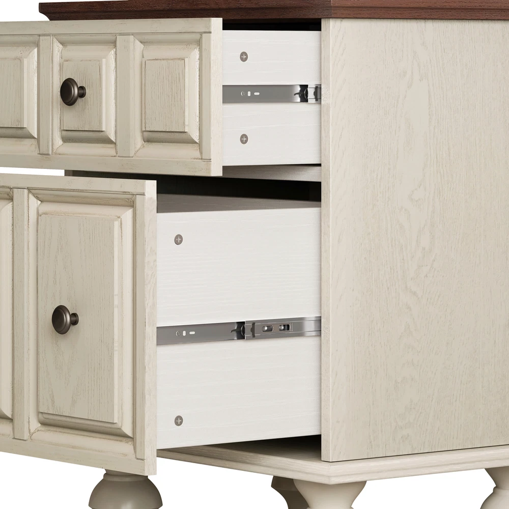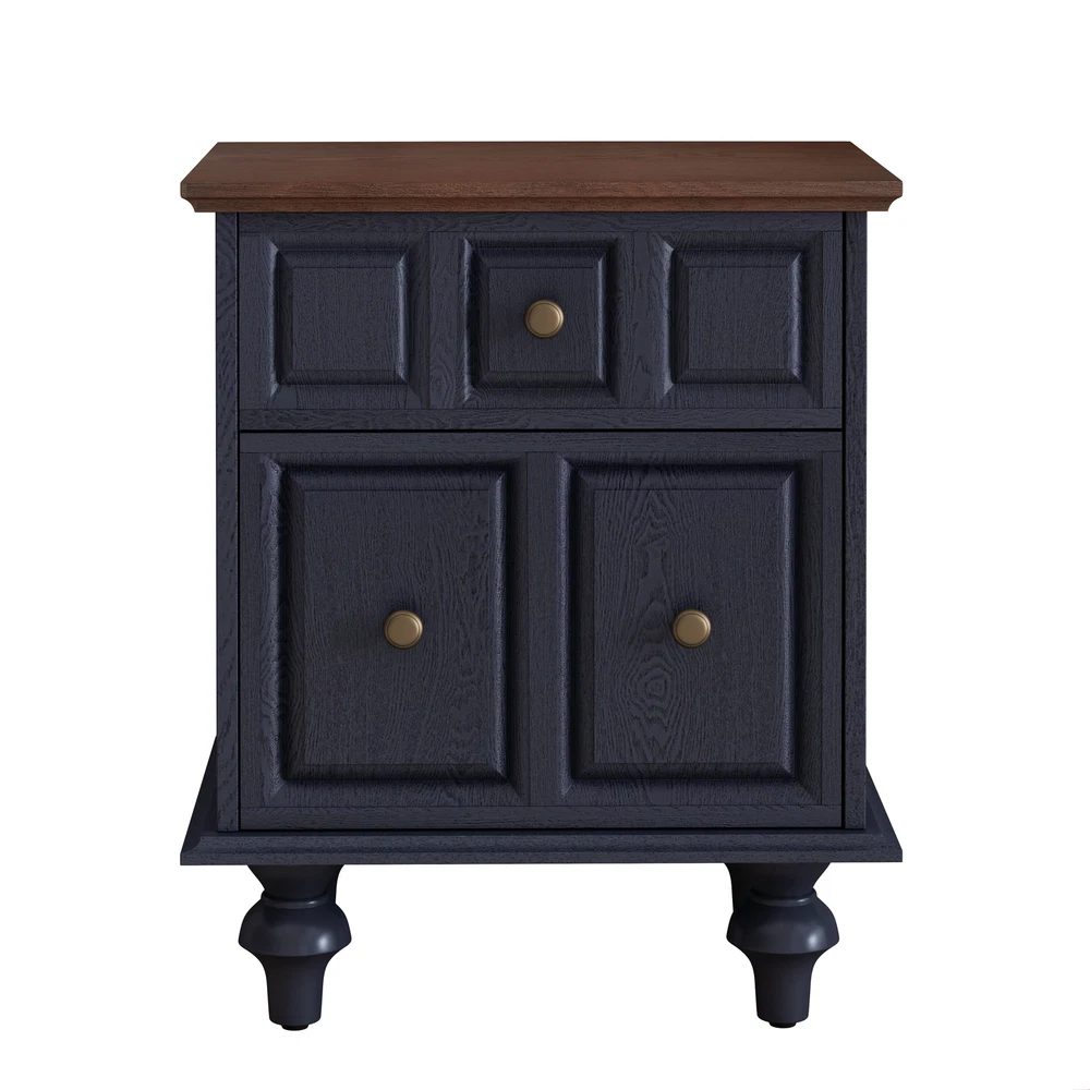 Product Features Two-Tone Nightstand:This vintage nightstand combines classic design with practical functionality.The wooden nightstands are both beautiful and functional. Their shape coupled with the natural texture of the surface enhances the overall visual appeal. Premium Material & Craft:The bedside cabinet is made of high quality MDF and solid wood to ensure durability. The unique design of the four solid wood Roman column cabinet feet not only provides solid support, but also adds a vintage and elegant flavor. Size Drawer Design: The nightstand is equipped with two drawers of different sizes, which is easy to categorize and organize your small items in the bedroom or living room.Drawers are made of high-quality metal slides, which are noiseless and easy to open every time. The bed side table is elegant and functional. Vintage style design: embossed with a special old craft, highlighting the unique texture pattern and rustic flavor. Every detail reflects the exquisite vintage craftsmanship, from the lines of the cabinet to the Roman column feet, all exuding a nostalgic flavor. Whether with a modern minimalist bedroom or retro style living room, it can be the highlight of the space. Multi-Scenario Versatility:Perfect as a bedside table, living room side cabinet, or entryway accent piece.Compact footprint fits seamlessly in apartments, studios, and vintage-themed spaces. Thoughtful Functional Details:Smooth-gliding drawers with anti-tip safety design, ideal for storing books, remotes, or sleep essentials. Safe and Easy to Assemble:With simple assembly instructions and easy-to-clean surfaces, this storage cabinet is both quick and hassle-free to put together and maintain, saving you time and effort in the long run.Even after years of use, it will not fade or damage, maintaining a good appearance.The storage cabinet are equipped with anti-tipping devices to protect you and your family from potential hazards.
