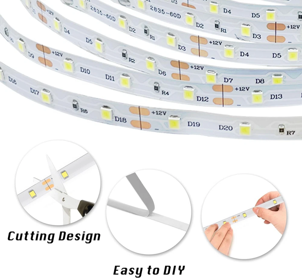 Bright led strip lights: White led strip 20 ft with 360 LEDs and 6500 K color temperature, easily light up those dark rooms, cabinets, mirrors and corners. Dimmable Lights: You can simply rotate the control box to dim or brighten white led lights strip to desired level for various occasions. Safe Use: Led strip lights white powered by a 24V working voltage, emits low heat, incredibly safe use and touchable. Easy to Install: Just simply stick the white led lights to a dry, clean surface for use. Strong adhesives ensure your strip light will not fall or hang. Widely Use & Cuttable: You can DIY the length to fit your bedrooms, mirrors, cabinets, living room, kitchen closets, and more. Just be careful cut along the copper wire markings. Product Description Led Strip Lights White The white led strip lights is super bright, easily light up those dark rooms, cabinets, mirrors and corners. Brightness adjustable, Stepless Dimming You can simply rotate the control box to dim or brighten white led lights strip to desired level for various occasions. Brights Up Mirrors, Make-up Mirror Light Up the Closet Perfect for Kitchen Easy to Install, Strong Adhesive Widely Use For Bedrooms For Living Room For Bathroom For Stairs