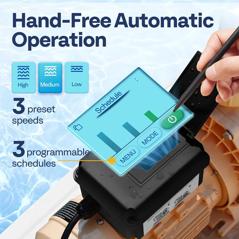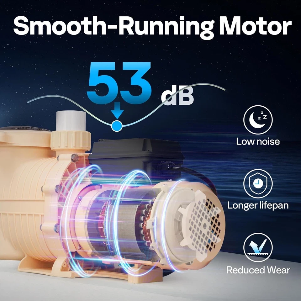 💲💲💲 SAVE BIG ON THIS OPEN BOX PUMP 💲💲💲 (See photos) 2.0HP 115V Variable Speed Pool Pump, Self-Priming, Energy Saving, 1.5" & 2" Inlets Specification Item model number VH1737-BK Style 2.0 HP Variable Speed Maximum Lifting Height 67 Feet Power Source Corded Electric Color Black Product Dimensions 9.7"L x 6.3"W x 11.6"H Material Polypropylene (PP) Item Weight 31.3 Pounds Maximum Flow Rate 95 Gallons Per Minute Voltage 115 Volts (AC) Specific Uses For Product In/Above Ground Pools 6.3 "h x 9.7 "h x 11.6 "h. Weight: 31.3 lb Item Description VIVOHOME 2 HP Variable Speed Pool Pump – In/Above Ground Pools High-Efficiency Variable Speed Motor Featuring a 2.0 HP copper motor with three adjustable speeds, this pool pump delivers flow rates of 1,980, 5,460, and 5,700 GPH , allowing you to optimize filtration and circulation while reducing energy consumption by up to 80% . Whether you need high-speed suction for deep cleaning or low-speed, energy-efficient operation, this pump provides consistent, reliable performance. Advanced Control System The built-in control system enables precise scheduling of start/stop times and variable speeds throughout the day. This intelligent operation maximizes energy savings without compromising water quality, ensuring your pool stays clean with minimal effort. Hand-Free Automatic Operation A digital touchscreen interface allows real-time monitoring and easy adjustment of speed and settings. The user-friendly display gives instant feedback, making pool maintenance intuitive and stress-free. Durable, Corrosion-Resistant Construction Engineered for in-ground and above-ground pools , the pump body is made of commercial-grade thermoplastic , while the motor housing is corrosion-resistant stainless iron—ideal for saltwater pools . Components are designed to withstand prolonged use, providing long-term durability. Extended Lifespan By adjusting speed based on demand, this variable-speed pump reduces wear and tear on internal components compared to traditional single-speed pumps. Thermal protection prevents overheating, further extending the pump’s lifespan. 1-Year Warranty for Peace of Mind This pump comes with a 1-year warranty , ensuring reliable performance and support for both in-ground and above-ground pool applications. Specifications: Voltage: 115 V Frequency: 60 Hz Flow Rate: 1,980 / 5,460 / 5,700 GPH Max Head: 67 ft Self-Priming Height: 4.9 ft Connectors: 1 x 1.25–1.5" Hose, 1 x 1.5" PVC Pipe, 1 x 2" PVC Pipe Item Dimensions: 22.4"L x 9.8"W x 11.4"H Item Weight: 27.8 lb Key Features: 2.0 HP high-performance copper motor Energy-efficient variable-speed operation Corrosion-resistant thermoplastic and stainless iron components Digital touchscreen control for easy monitoring Intelligent scheduling for optimized filtration Suitable for saltwater pools, in-ground and above-ground