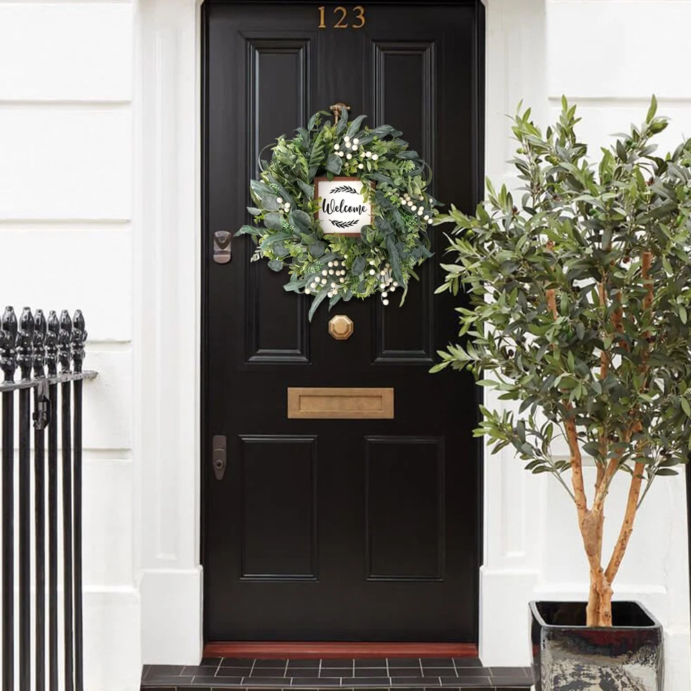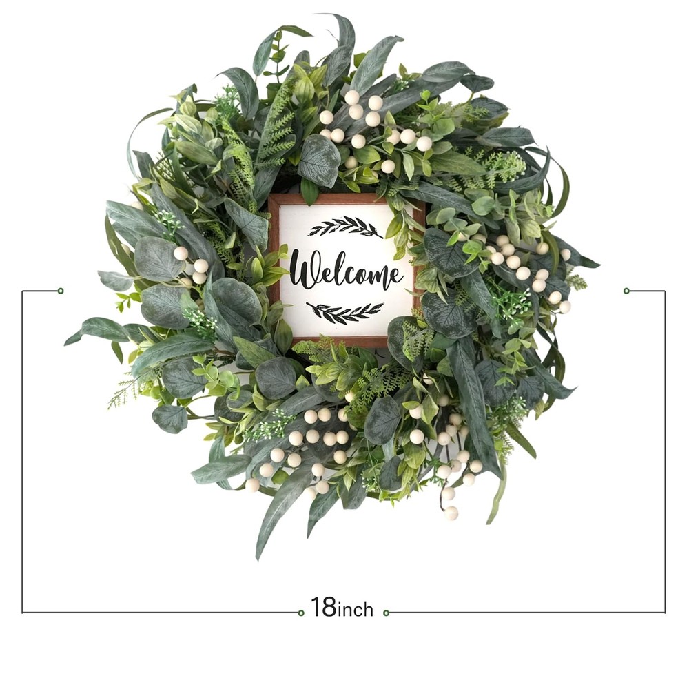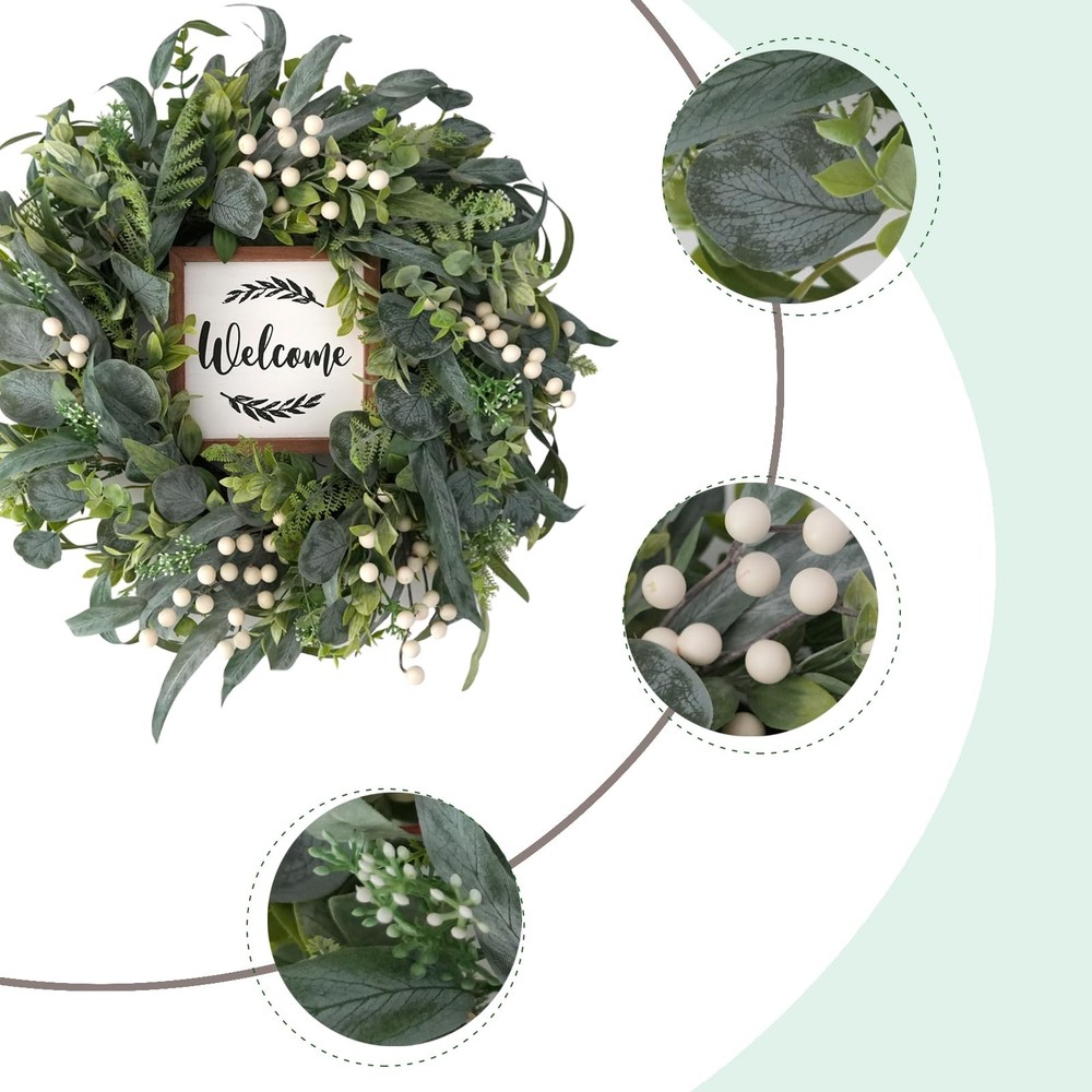 The lifelike eucalyptus wreath adds personality and warmth to your home on a front door, mirror, window, or wall, from kitchen, living room, dorm room to office, giving you and your guests a warm welcome for holidays and special occasions. Green Eucalyptus Wreath: The Spring wreath for front door contains Eucalyptus Leaves and White Berries. The eucalyptus leaves are made of silk cloth, and the white berries are made of PE material, durable and resistant to fading. Perfect size : Each wreath is packaged in a sturdy box to ensure safe transportation and storage. Upon receipt, the branches can be adjusted to enlarge the wreath to create the perfect shape. Multi-purpose : The lifelike eucalyptus wreath adds personality and warmth to your home on a front door, mirror, window, or wall, from kitchen, living room, dorm room to office, giving you and your guests a warm welcome for holidays and special occasions. Best service: It is our greatest desire and pleasure to offer you our Full Presence and Best Support. If you have any questions about our product. Please feel free to our , we will reply within 24 hours. For Every Season : Artificial Wreaths bring the season into your indoor space, vibrant color will look great for years to come! You can also add other Wreath ornaments or colorful flowers to make it unique and diversify! It is perfect decoration for any door or room of the house!
