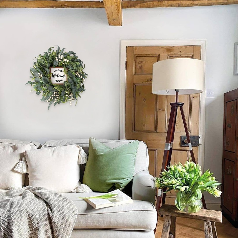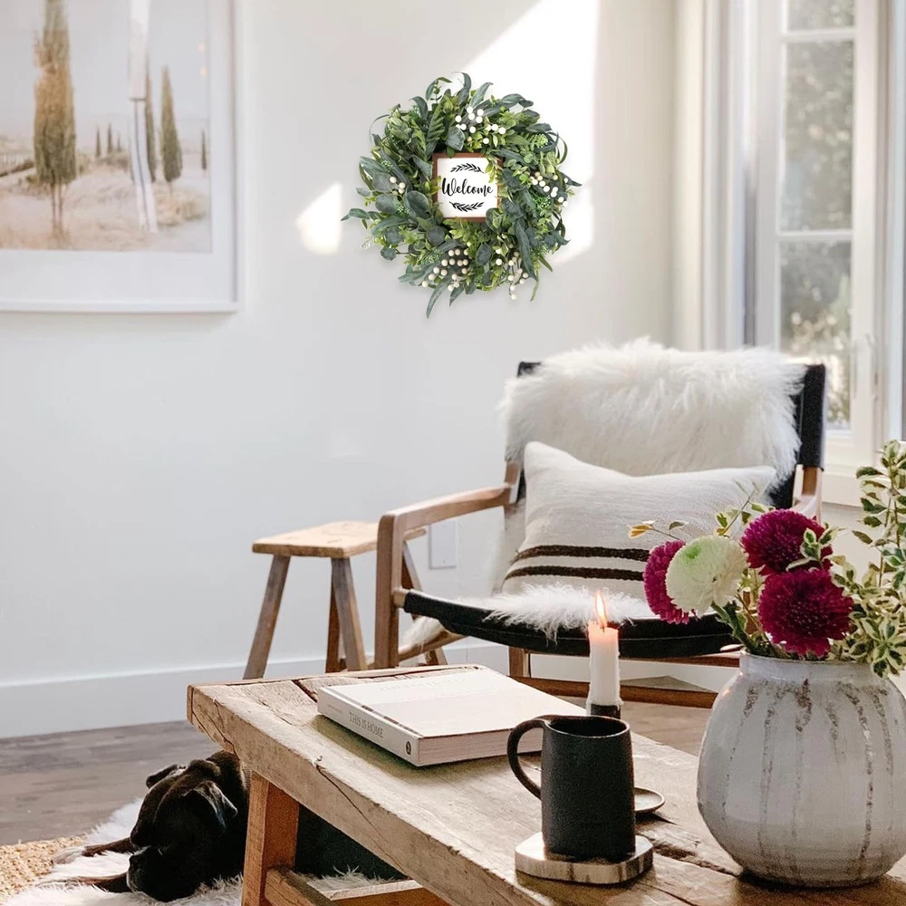 This gorgeous eucalyptus wreath brings effortless charm to any space! The lush green leaves and delicate white berries look so realistic—no one will guess it's faux. The sturdy construction holds up beautifully, and the 20-inch size makes a statement without overwhelming. I love how it instantly brightens my front door, but it also looks stunning hung on a mirror or above the fireplace. Perfect for year-round decor or adding a fresh touch for holidays. The quality is fantastic, and it arrived well-packed with no damage. Such an easy way to elevate my home’s vibe!