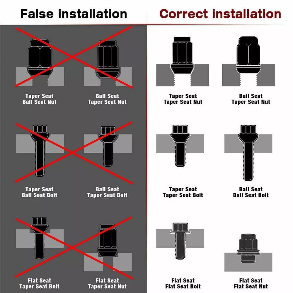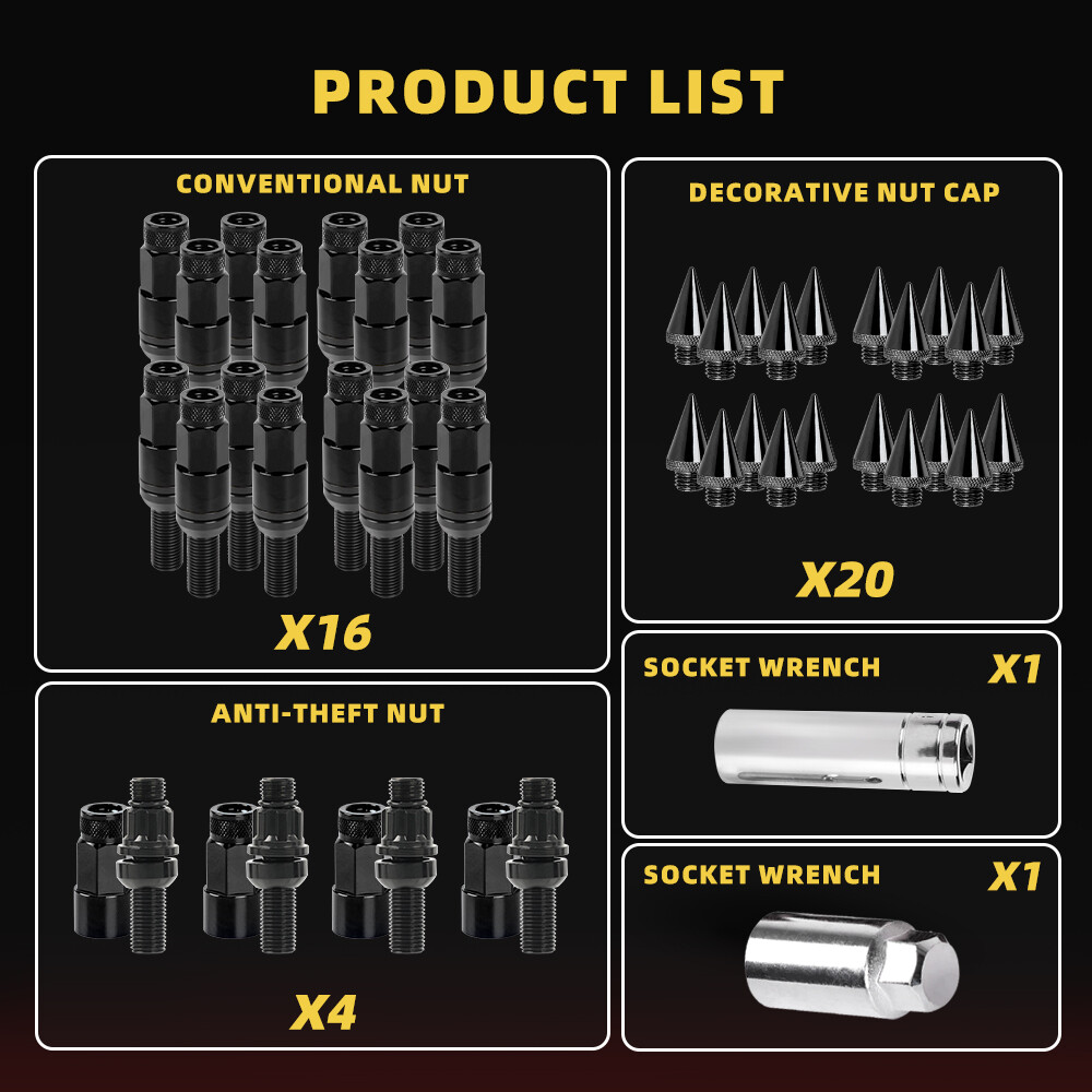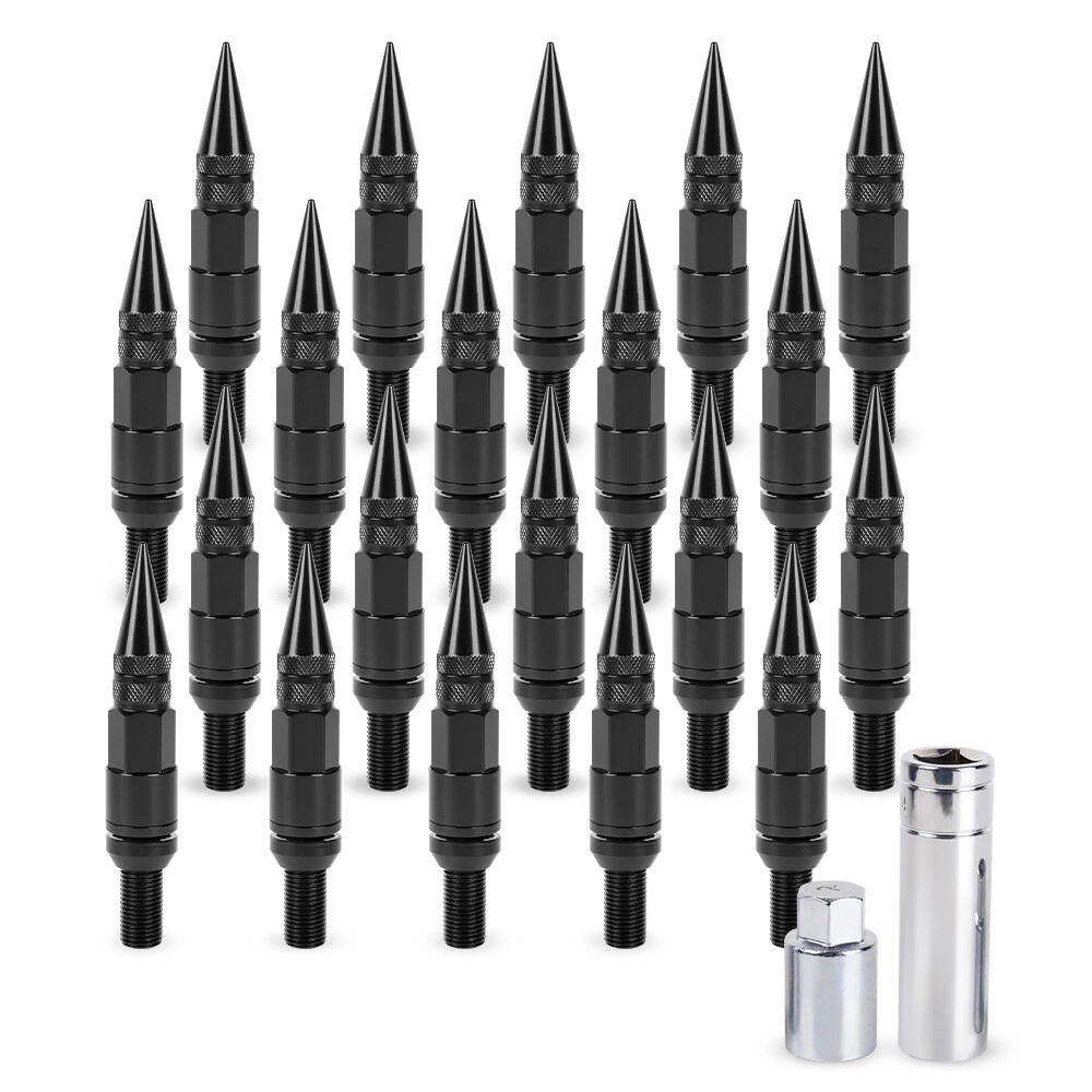 20PCS Racing Wheel Spike Lug Nuts 14x1.5 Lug Bolts Closed End Ball Seat w/ Key SPECIFICATIONS: Type: Spiked Wheel Nut Material: Aluminum Alloy + Steel Steel Lug Nut Construction / Aluminum Cap & Shell Thread Pitch Size: M14x1.5 17mm Hex | 130mm Overall Length | 30mm Shank | 40mm Spiked Cap Seat Type: Ball Seat (when you remove the Black seat, it will turn into Mag Seat) End Type: Closed End Design FERTURES: 100% quality assurance tested, more responsive, less expensive, easier to install. Made from steel and aluminum, high strength, not easy to break. Electroplating prevents oxidation and protects the steel. 60 degree conical bulge seat lug nuts for secure fit.Perfect for replacing rusted and/or broken lug nuts. Great for showing off your wheels and enhancing the overall look of your vehicle. The oversized 60 degree tapered seat offers better contact on the wheel and the topis knurled for easier installation. FITMENT: Vehicle with Thread Pitch M14x1.5mm with 60 Degree Conical Seat ONLY Will NOT fit on wheels with Acorn, Conical or Tapered Seats Please check the size of nuts on your wheels before buying. PACKAGE INCLUDE: 20 × Spike Lug Nuts (including 4pcs Anti-theft Nuts) 2 x Socket Wrench Tools All accessories in the picture are included. NOTE: 1. Please allow 0.5-1 inch difference due to manual measurement. (1 inch=2.54cm) 2. Please check the size measurement and the picture carefully before makingpayment. 3. Due to the difference between different monitors, the picture may not reflect theactual color of the item. Please understand, Thank you. SHIPPING INFORMATION PAYMENT WARRANTY ABOUT US CONTACT US SHIPPING INFORMATION We will only ship this item to buyers by Normal Mail, please confirm your address is correct, and if you want to change the delivery address, just feel free to contact us when you purchase. Usually, we will ship the orders out and upload the tracking number within 1-2 business days(Monday to Saturday from 8:30am-5:30pm) after you complete the payment. PAYMENT We will only accept eBay payment. Please pay using eBay payment ONLY within 7 days from the date of transaction be made. WARRANTY Please inspect your order upon receipt.No damage claims will be honored after 14 days of delivery. All item we sold come with 90 days defective warranty from the date. ABOUT US We are a powerful factory producing auto parts,and we have a professional sales and after-sales team that can provide you with excellent products and services. CONTACT US For any reason you want to contact us,We aim at satisfying every visitor, no matter what kind of situation you meet with, we will be right here to serve you. Please contact our team. If you are happy with the transaction with us, leaving us an ALL-5-STAR positive feedback would be greatly appreciated. Have a good shopping.