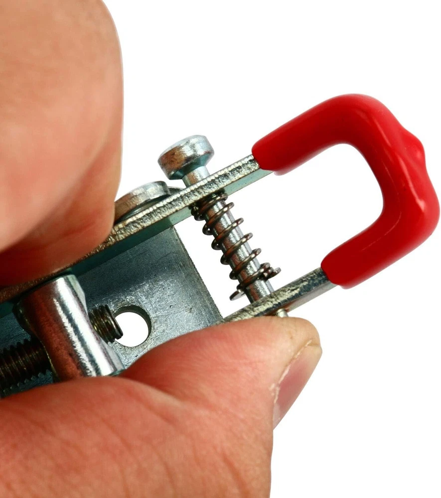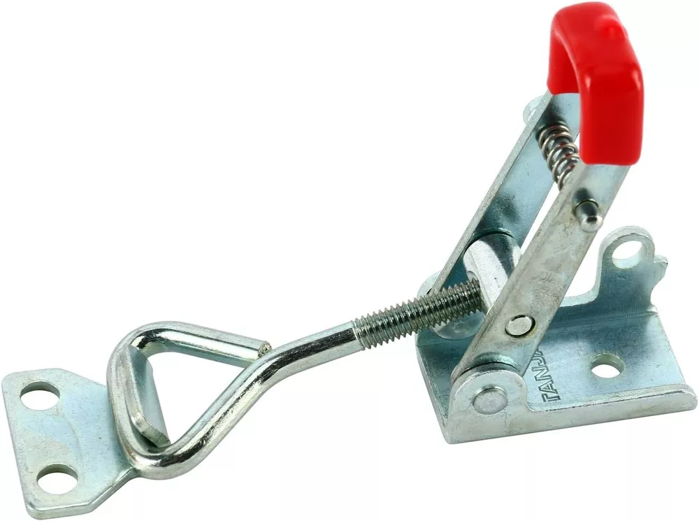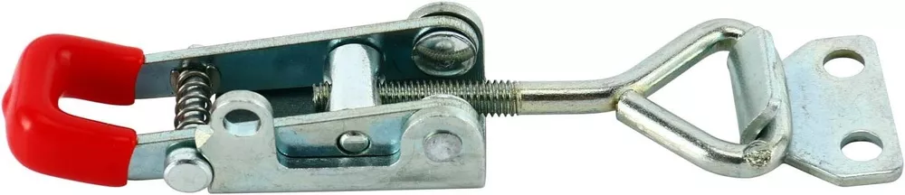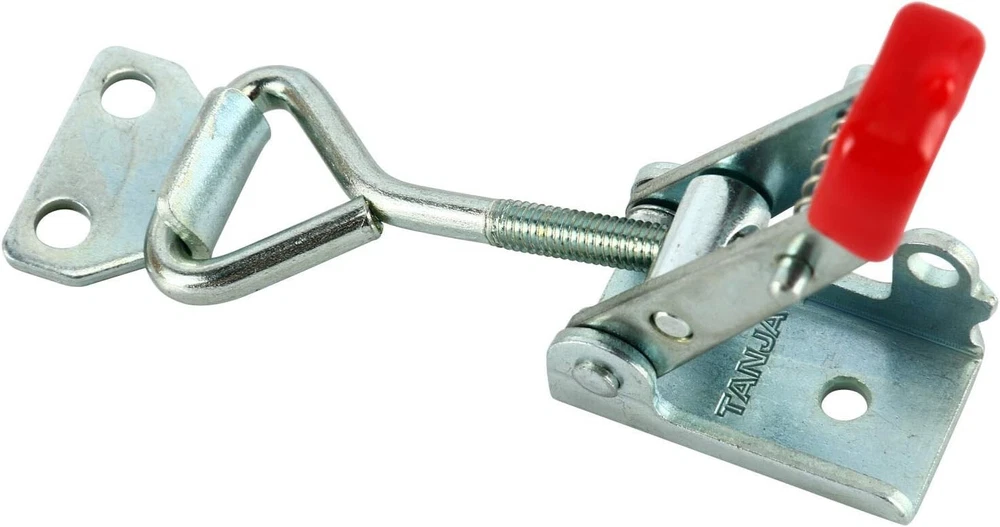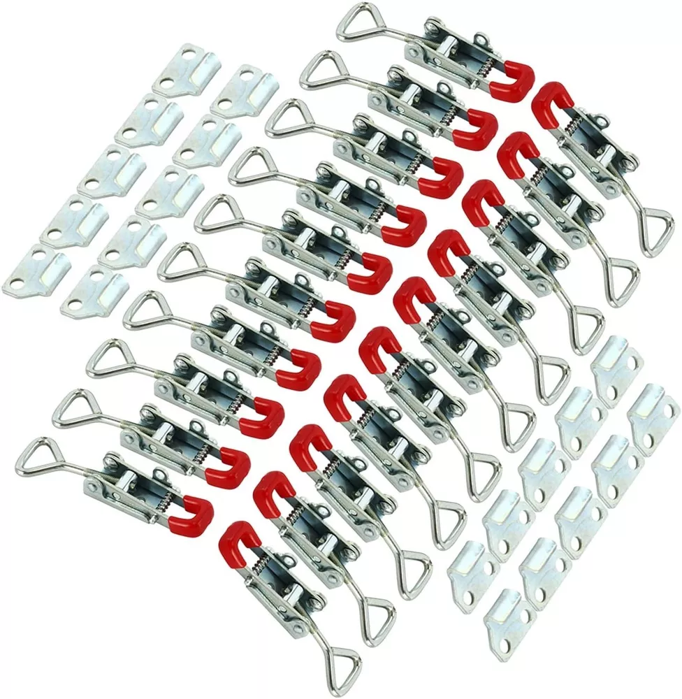 Product Description Specifications: Model: 4012 Size:2.7''*0.8'' Locking Load: 1KN; Ultimate Load:3KN ; Material : Metal, Plastic ; Finish:Zinc-plated/Polish ; Color: red, Silver Tone ,Weight : 500g Use: Convenient to operate,adjustable latch ,locking force is adjustable Unique Self-lock Adjustable Hand Tool ,prevent the latch accidental opening Plastic cover handle for easy, safe and comfortable operation. Widely used in different fields,vehicle,packing case,mechanical equipment,oscillatory machine. Package included:20 PCS 4012 Cabinet Box Lever Handle Toggle Catch Latch Lock Clamp Hasp