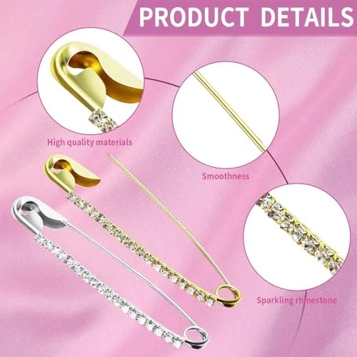 Return Policy Fast Delivery Trusted seller 20PCS Rhinestone Safety Pins Gold Brooch - Hijab Pins, Charms for Socks, Brooches and Pins for Women, Small Safety Pins, Brooch Pins - Gold & Silver Product Description PACKAGING CONTENTS: Elevate your fashion with 20PCS rhinestone safety pins brooch. Enjoy 10 pieces each in gold and silver, each size measures 2.17 inches in length and 0.51 inches in width perfect for adding a touch of bling to your outfits PREMIUM MATERIALS: Crafted from high-quality alloy, these silver safety pins with charms and gold safety pins are encrusted with rhinestones, ensuring durability and a fancy look EASY TO WEAR: Easily attach these brooch safety pins to sweaters, shirts, dresses, hats, scarves, and bags for instant style upgrades WIDE RANGE OF USES: Versatile and decorative, these rhinestone pins and brooches are ideal for clothing, socks, and accessory embellishments EXQUISITE DECORATIONS: Add a touch of glamour with these large gold safety pins decorative and silver safety pins. Perfect for women who love fashion safety pins and bling Shipping Returns Payment Shipping Shipping is FREE to all addresses other than APO/PO boxes in the lower 48 states. All our stock ships from US-based warehouses. Shipped via USPS or UPS (depending on location and package weight) Unless stated otherwise, all orders will ship within 24-72 hours of your payment being processed. Check our feedback to see the great reviews of FAST shipping we offer. Returns Seller does not accept returns Payment We currently accept payment via eBay managed payments only. Once payment is cleared, we will dispatch your shipment within 1-3 business days. Please refer to the "Shipping" tab for more information regarding shipping speed to your destination.
