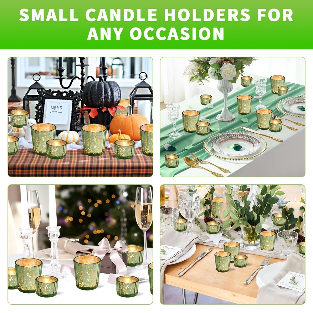 Green Votive Candle Holders Set of 20, Wedding Centerpiece Table Decorations,Glass Candle Holders for Home Decor,Tea Light Candle Holder for Table Centerpiece Thanksgiving Christmas Decor (20, Green) Size Specification: Green candle holder set is composed of two different size candle holders: 2.17'w x 2.36'h | 2.17'w x 1.57'h. The combination candle holder set is perfect for most of the votive candles, tealight candles and flamless candles GREEN VOTIVE CANDLE HOLDERS For Fall Decorating: Green votive candle holders are perfect for fall weddings, home decor, dinner parties, holidays( Diwali, Thanksgiving, Christmas ), and special occasions, add a glamorous glow and old-time elegant look to any table setting Tea light candle holder: Mercury speckled effect on the tealight holder will enhance the natural warm light of candles, giving it a vintage but timeless look. Use these pretty green mercury glass votives as part of your overall decor, or as a favour for your guests HIGH-QUALITY & SAFE MATERIALS: These candle holders bulk are made of thickened glass and high-temperature resistant materials to ensure safe use when the candles are burning. The widened and thickened base effectively keeps the entire stand stable WARM TIPS: Glass products are fragile during transportation. If the candlestick holders you received is damaged in any way, don't worry. We are service team is always here to help GREEN VOTIVE CANDLE HOLDERS For Fall Decorating: green votive candle holders are perfect for fall weddings, home decor, dinner parties, holidays( Diwali, Thanksgiving, Christmas ), and special occasions, add a glamorous glow and old-time elegant look to any table setting Shipping We offer FREE shipping on all orders! We ship within Three business days of payment, usually sooner. We use a selection of shipping services such as UPS, FedEx, USPS etc. We only ship to the lower 48 states, no APO/FPO addresses or PO Boxes allowed. Local pickups and combined shipping options are not provided at this time. International buyers – please note: Import duties, taxes, and charges aren't included in the item price or postage cost. These charges are the buyer's responsibility. Please check with your country's customs office to determine what these additional costs will be prior to bidding or buying. Order Cancellation Policy * Order Cancellation Policy ** You can return a product for up to 30 days from the date you purchased it. 1. The seller reserves the right to cancel the special case only due to eBay cancellation fee. 2. The decision of seller is the final. 3. The seller will respond to the cancellation request within 2 business days. Please wait for the result of cancellation. 4. In case the cancellation is not completed by some reasons, the buyer can follow the options below to get the refund. 4.1 The buyer can reject the item when it arrives. 4.2 The buyer can send the item back to the seller within 30 days If the buyer receives item (USA Shipment ONLY). The seller will provide the FREE return label to the buyer when the buyer opens " Return Item" case on eBay by using the reason as "Change my mind" ONLY. 5. When buyer has placed the order. The order will be processed and completed by automatic warehouse system within 5 minutes. In case that buyer sends the cancellation request after 5 minutes of placing the order, the request will be rejected. **Sending direct message to cancel the order is not allowed for every case.* Return Policy - If buyer would like to return the items for refund or replacement, please CONTACT SELLER to receive the free return label from seller. The refund or replacement will be processed with the tracking number of return label which is provided by seller only. The other ways of return which are not approved by seller will not be processed for the refund or replacement. Return You can return a product for up to 30 days from the date you purchased it. Any product you return must be in the same condition you received it and in the original packaging. Please keep the receipt. Payment We accept payment by any of the following methods: eBay Payments Please pay as soon as possible after winning an auction, as that will allow us to post your item to you sooner! Feedback Customer satisfaction is very important to us. If you have any problem with your order, please contact us and we will do our best to make you satisfied. Contact Us If you have any queries, please contact us via ebay. We usually respond within 24 hours on weekdays. Please visit our eBay store to check out other items for sale! Thank you for shopping at our store.