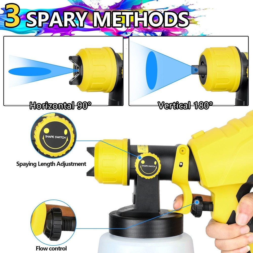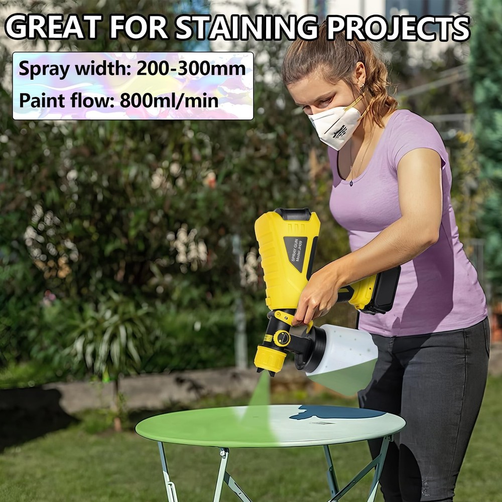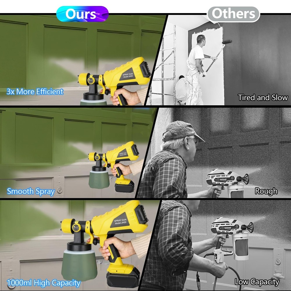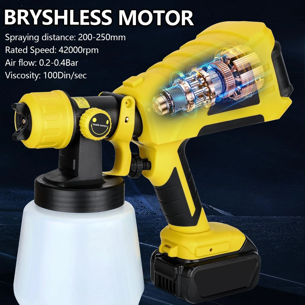 Cordless Paint Sprayer Compatible with Dewalt 20V Battery, HVLP Spray Paint Gun Brushless Motor Airless HVLP Spray Paint Gun Tools for House Painting/Home Interior (Tool Only) - Buy Now with Fast Shipping! Cordless Paint Sprayer Compatible with Dewalt 20V Battery, HVLP Spray Paint Gun Brushless Motor Airless HVLP Spray Paint Gun Tools for House Painting/Home Interior (Tool Only) Product Details Brand: Philophca Tank Volume: 1E+3 Cubic Centimeters Color: yellow Material: Plastic Item Weight: 2.8 Pounds Brand: Philophca Tank Volume: 1E+3 Cubic Centimeters Color: yellow Material: Plastic Item Weight: 2.8 Pounds Product Dimensions: 9.05"W x 10.63"H Style: Handheld Power Source: Battery Powered Included Components: 1 x User Manual Model Name: JNDW SG06 Item Weight: 2.79 pounds Manufacturer: Philophca Country of Origin: China Item model number: JNDW SG06 Key Features ✅ Cordless Paint SprayerThis cordless paint sprayer compatible with dewalt 20V li-ion batteries. The paint gun desgin without troublesome of cords and outlets, you can enjoy the convenience of spraying operation everywhere indoor and outdoor. ✅ 4 Copper Nozzle & 3 Spray patterns This electric paint sprayer come with 4 Copper Nozzle, 3.0mm, 2.5mm, 1.8mm, and 1.0mm. Crafted from pure copper, these nozzles not only resist paint corrosion but also contribute to the longevity of the sprayer. Meet various spraying scenarios and materials. ✅ 100 DIN-s It has a maximum viscosity of 100 DIN-s and is suitable for thinning a variety of materials such as latex paints, chalk, stains, sealers and varnishes. Air flow (0.2-0.4Bar) Rated Speed (42000rpm) Spraying distance (200-250mm) Spray width (200-300mm) ✅ Upgraded motor & Adjustable Flow This paint sprayer is featured with a upgraded brushless motor to reduce working noise, extend working time and improve working efficiency.The handheld paint sprayer flow rate can up to 650ml /min.It can adjust the flow rate seperatly according to your spraying effect. ✅ Wide Applications Portable paint sprayer allows you to spray a variety of projects such as interiors and exteriors, crafts, walls, ceilings, furniture, fences, cabinets, house painting and more. ✅ Warranty & Service Backed with a 1-year warranty and friendly tech support to help with any questions or concerns for the cordless paint sprayer. Buy with confidence! Built-in low voltage and overload protections, ensuring the safety of your battery. This feature-packed sprayer prioritizes your safety, providing peace of mind while you work. Product Description
