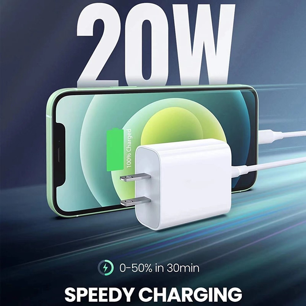 Fast Data Transfer & 3.0X Faster Charging: With this USB-C to iPhone Cable, you could transfer data from your iPhone/iPad directly, The speed of data transfer is up to 480 Mbps. Your iPhone 12 can be charged up to 50% after 30 mins fast by iPhone 12 charger. Compared with 5W original charger, this 20W PD fast charger for iPhone could save more than 1.5 hour for you! 20W Power Delivery Fast Charge Speed: For iPhone 14/14 Pro/14 Pro Max/14 Plus For iPhone 13/13 Pro/13 Pro Max/13 Mini For iPhone 12/12 Pro/12 Pro Max/12 Mini For iPhone SE 2020 For iPhone 11/11 Pro/11 Pro Max For iPhone X/XR/XS/XS Max For iPhone 8/8 Plus For iPad Pro 10.5”/iPad Pro 11". For iPad Mini 5 7.9”and later models. Standard Charge Speed: For iPhone 7 7 Plus, 6 6 Plus, 6S 6S Plus, 5, 5C, 5S, SE,For iPad Air, For iPad Mini,For iPad Pro. Composition Materials: 20W USB-C PD3.0 Fast Charging MFi Certified Chip Color: White Cable Length: 3FT/6FT Input Voltage: 100-240V ~ 50-60Hz, 0.6A Output Power: 5V/3A, 9V/2A, 9V/2.2A Material: TPE Flexible Cord Carbon + 100% Coppery Core Bulit in High-Tech Chip: The updated smart iQ chip in the USB-C power adapter protect your iPhone/iPad from overcurrent, over-voltage, short-circuit and overheating, improving the charging efficiency and security. Charge Your iPhone Everywhere: Compact size 20W PD wall charger paring with 3ft/6ft extra long C to cable with fast, efficient charging at home, in bedroom, office, backseat of car and even travel anywhere, completely hassle-free. Heavy-Duty Durable Cable: For iPhone fast charging cable is Extremely durable with built-in kevlar fiber for maximum strength. It could bring larger and stable current without damaging the device battery when charging. Package Included: 1x 3ft/6ft USB C to iPhone White (Optional) 1x 20W Type C PD Wall Plug - White (Optional)